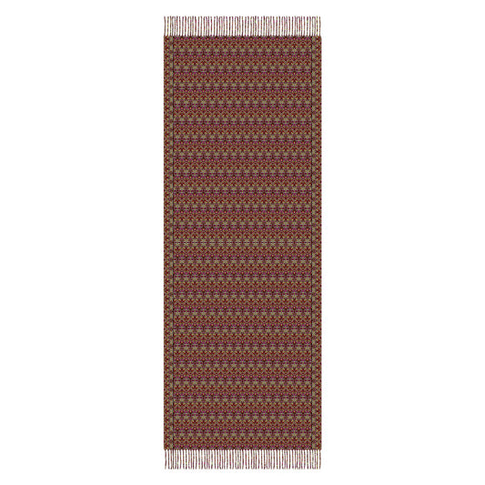 Red - Yellow - Orange Abstract Doodle Scarf with Tassels
