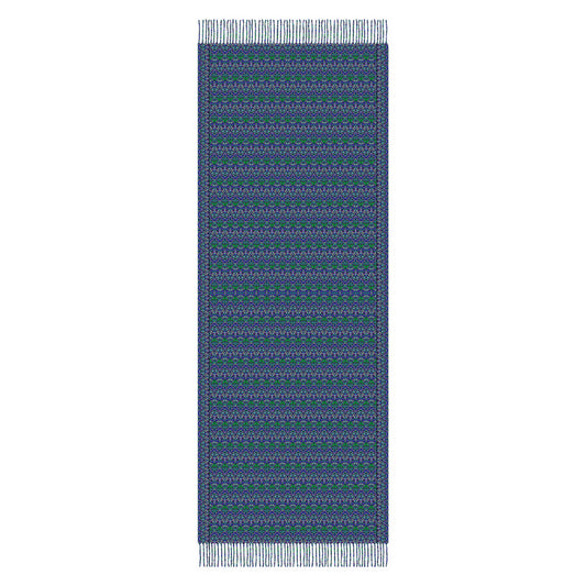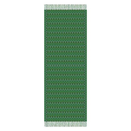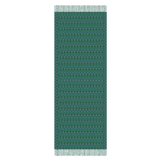Green - Turquoise Abstract Doodle Scarf with Tassels