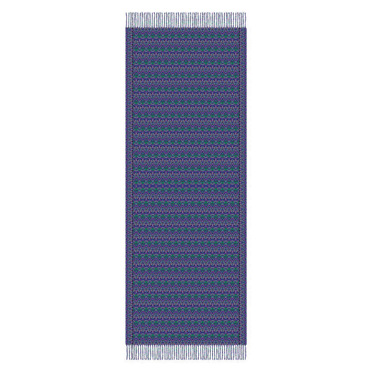 Turquoise - Green - Purple Abstract Doodle Scarf with Tassels
