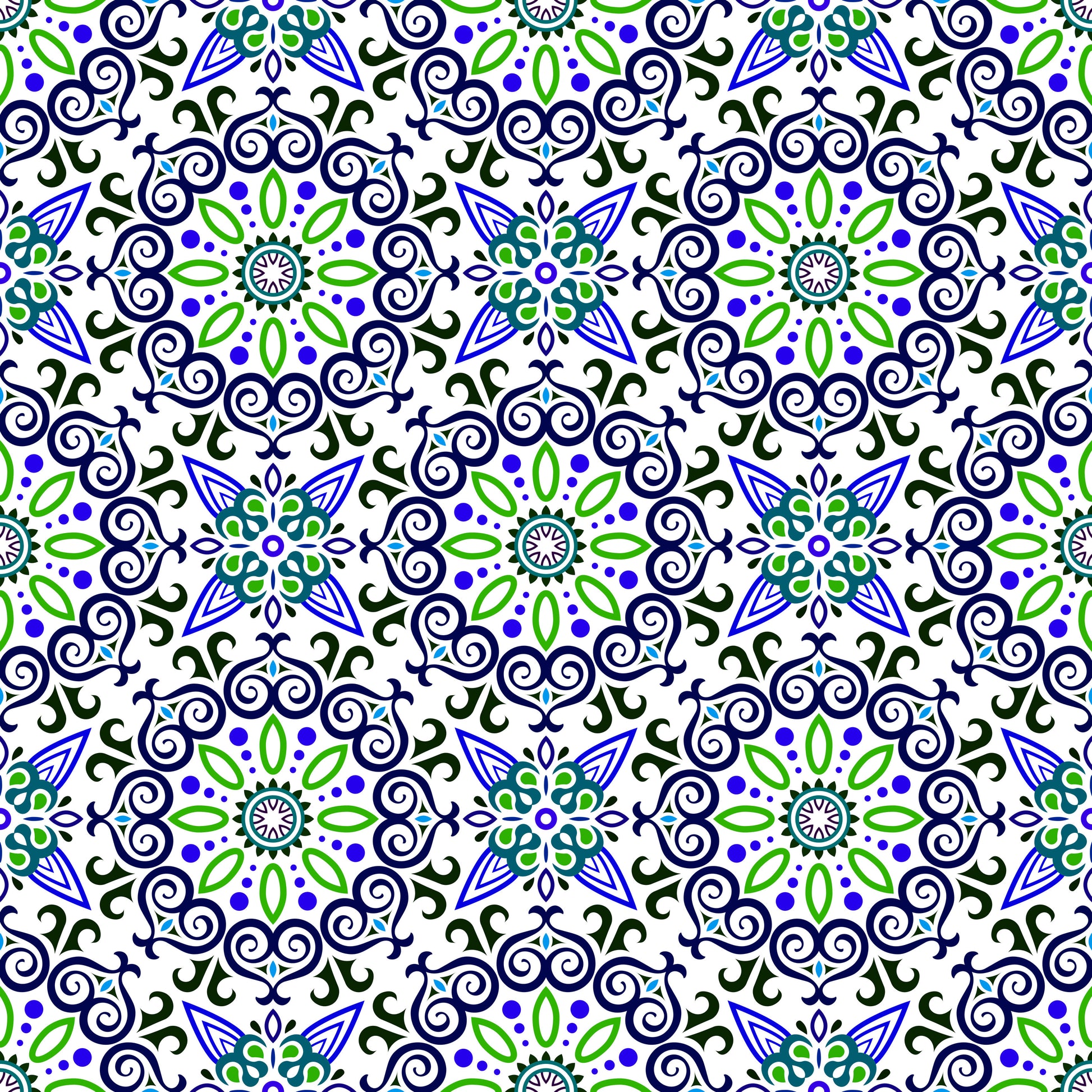 Blue - Green Mandala Fabric - 138i