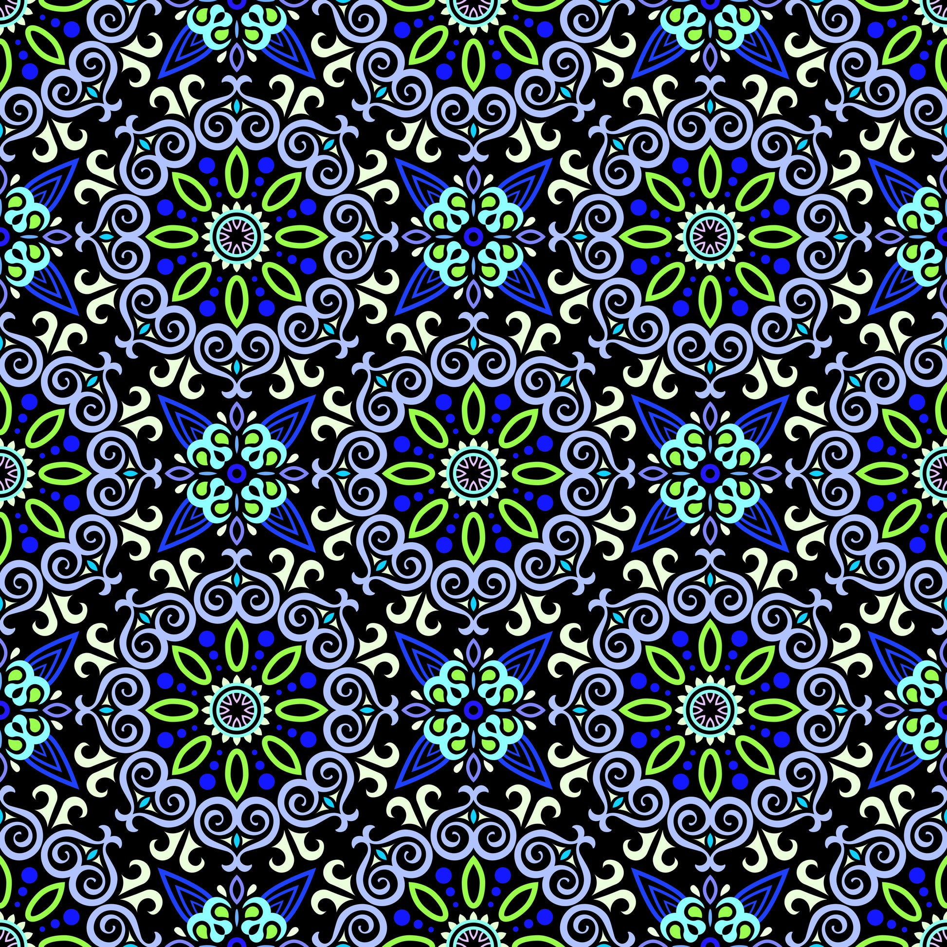 Blue - Green - Turquoise Mandala Fabric - 138