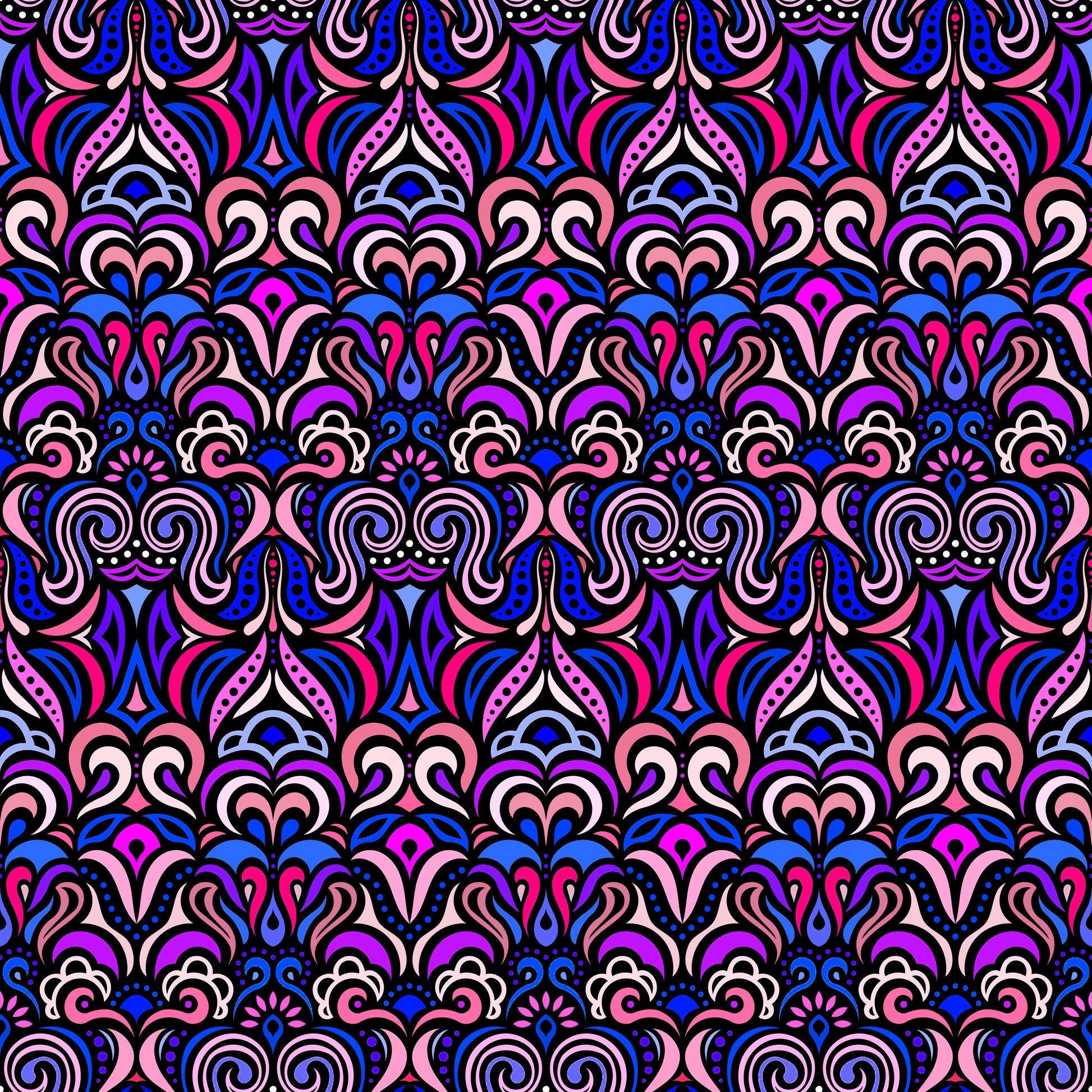 Blue - Pink - Purple Abstract Doodle Fabric 1008.3