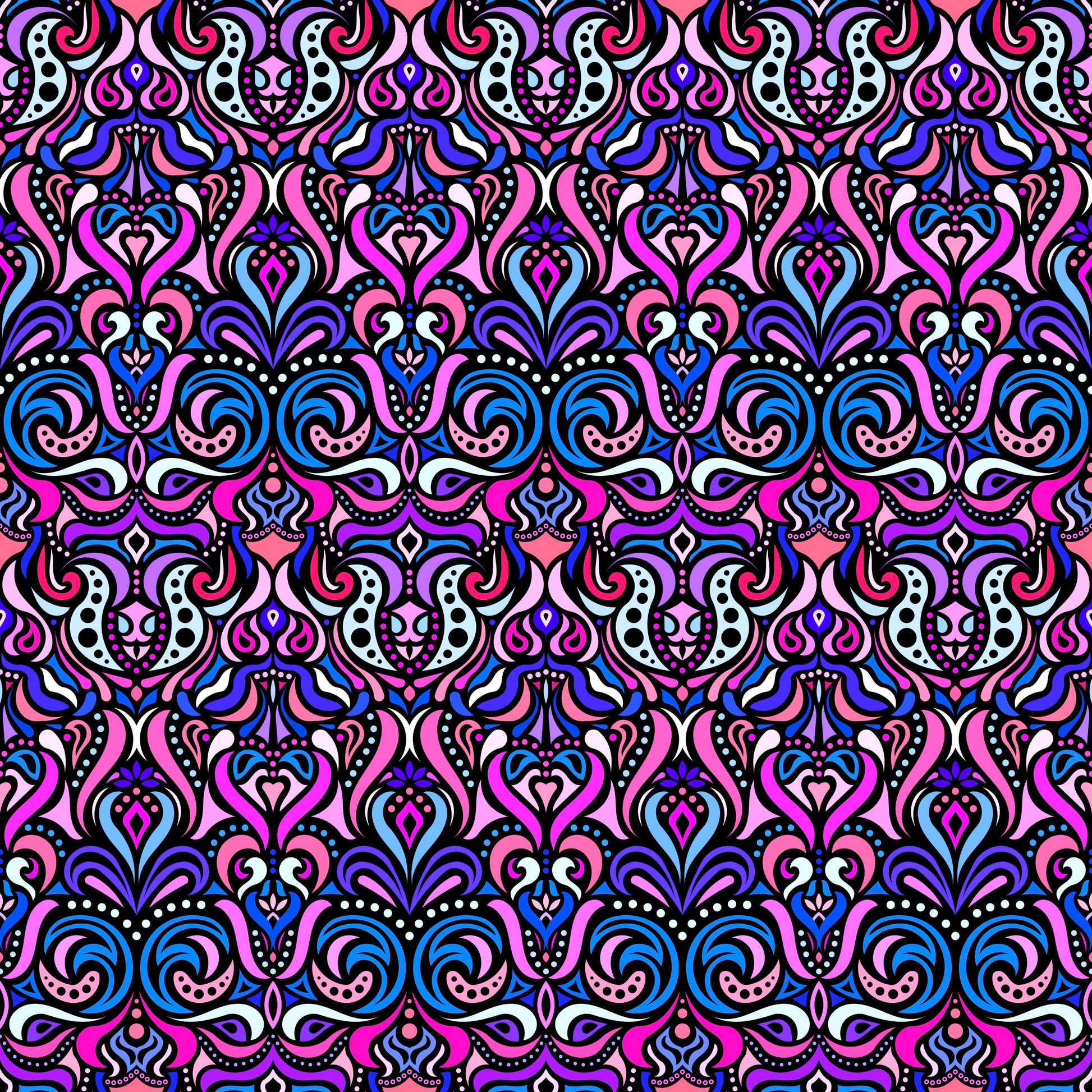 Blue - Pink - Purple Abstract Doodle Fabric 1011.4