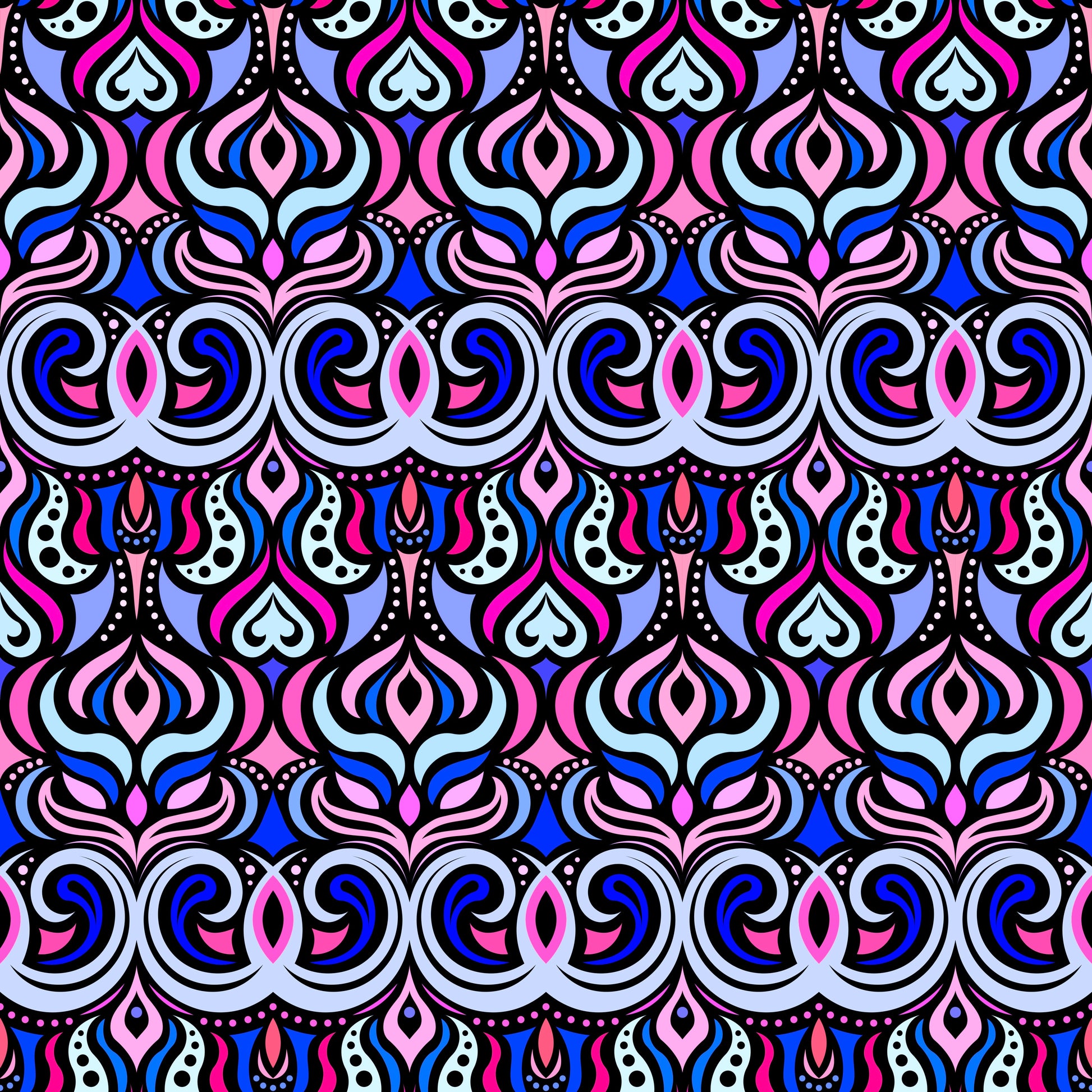 Blue - Pink - Turquoise Abstract Doodle Fabric 1009.7