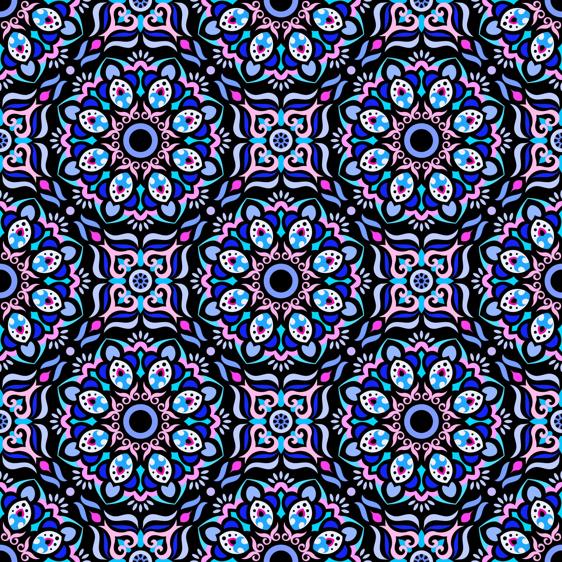 Blue - Pink - Turquoise Mandala Fabric - 186