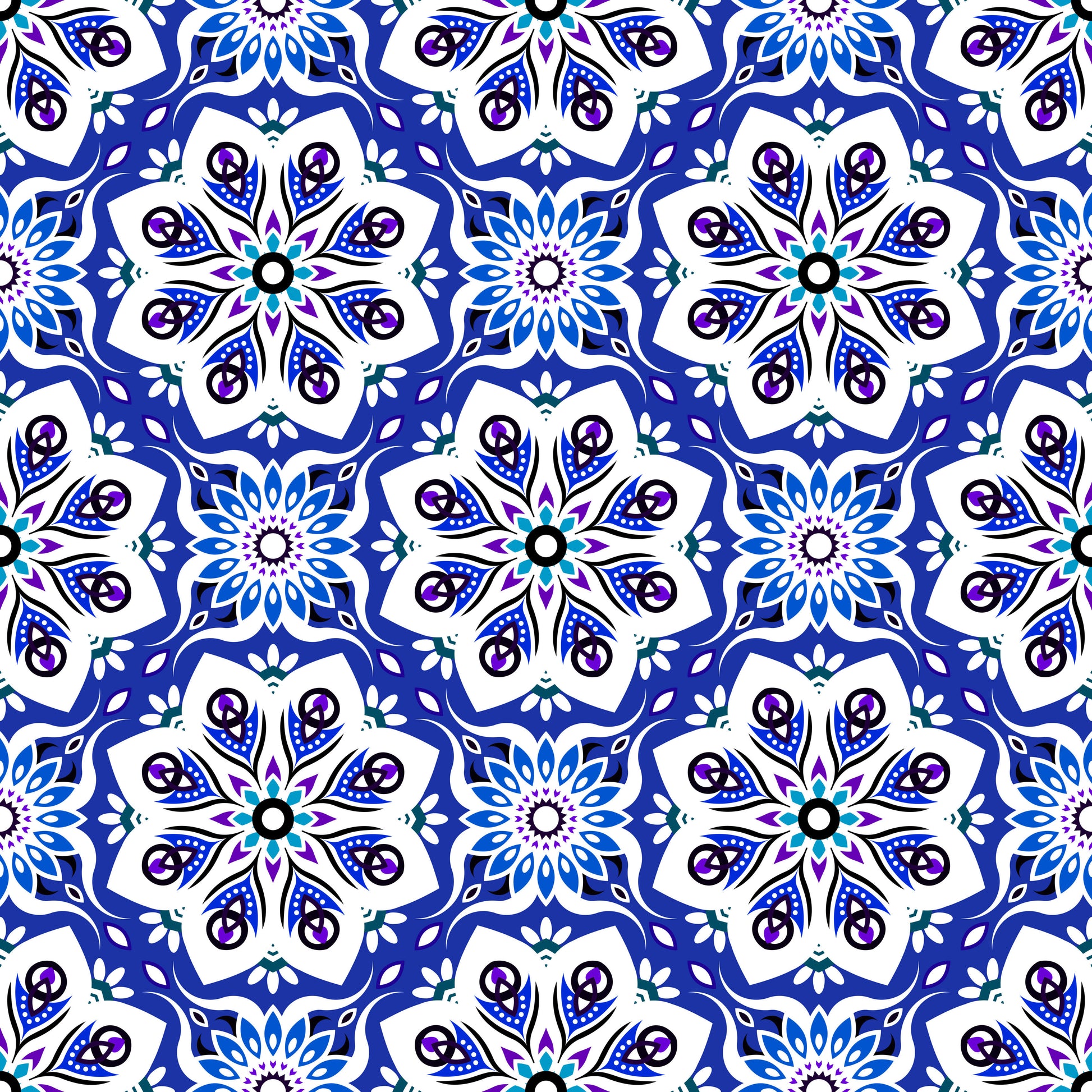 Blue - Purple Mandala Fabric - 236i