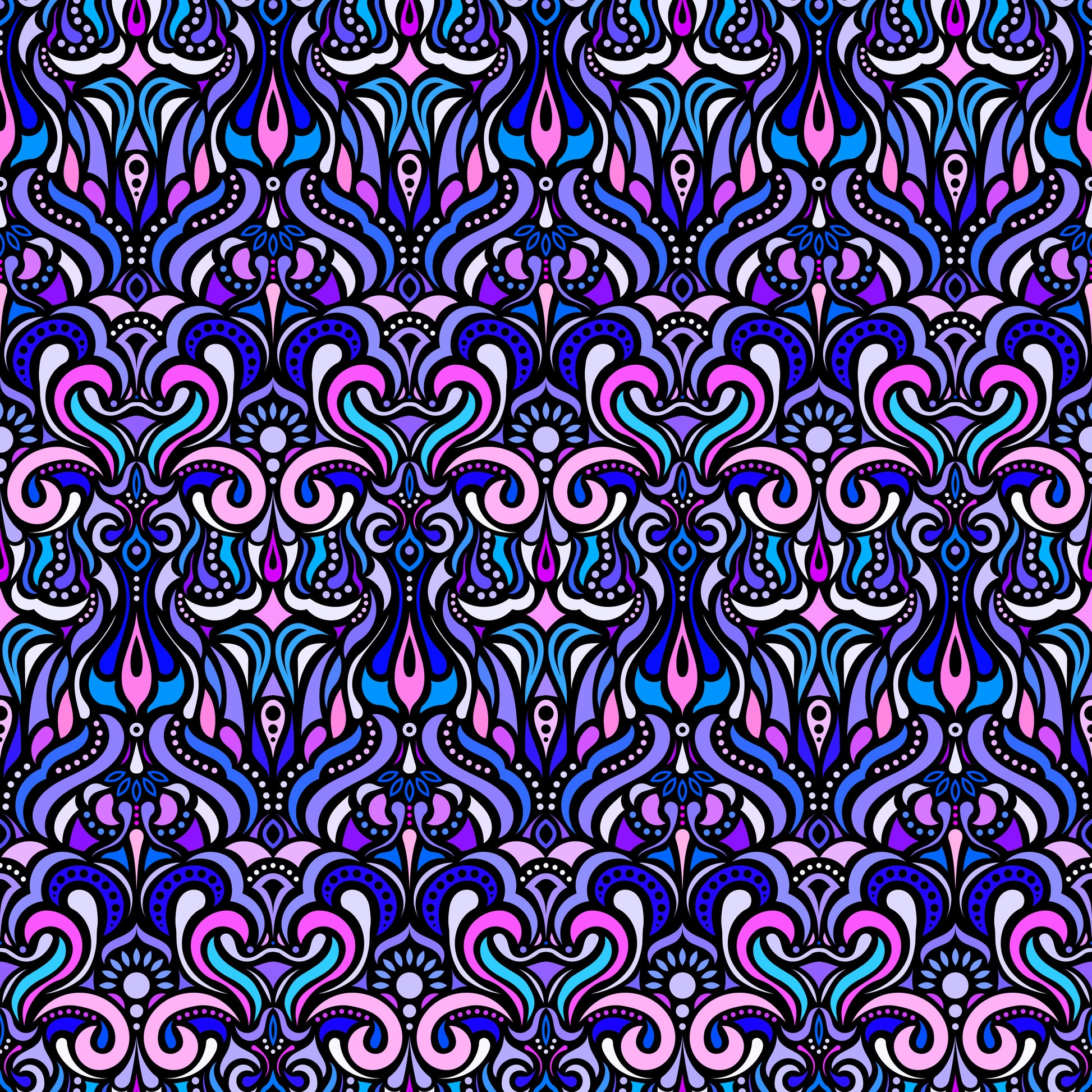 Blue - Purple - Pink Abstract Doodle Fabric 1012