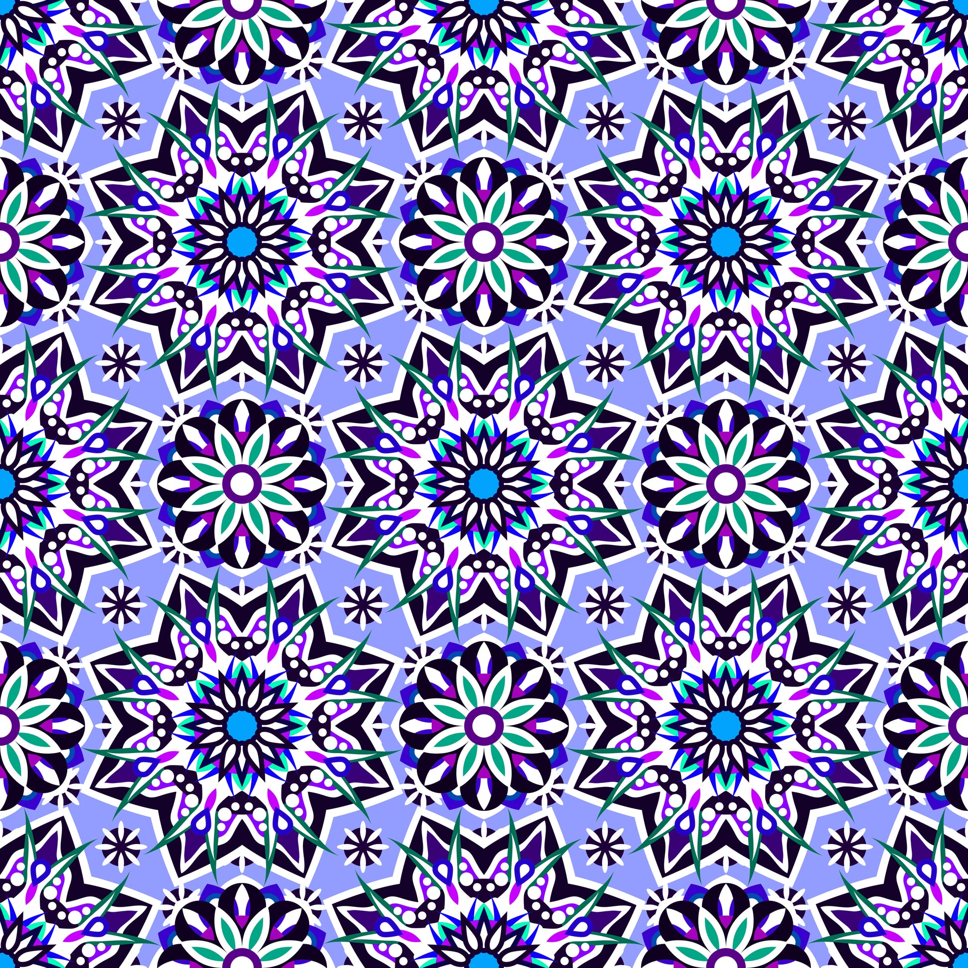 Blue - Purple - Turquoise Mandala Fabric - 122i