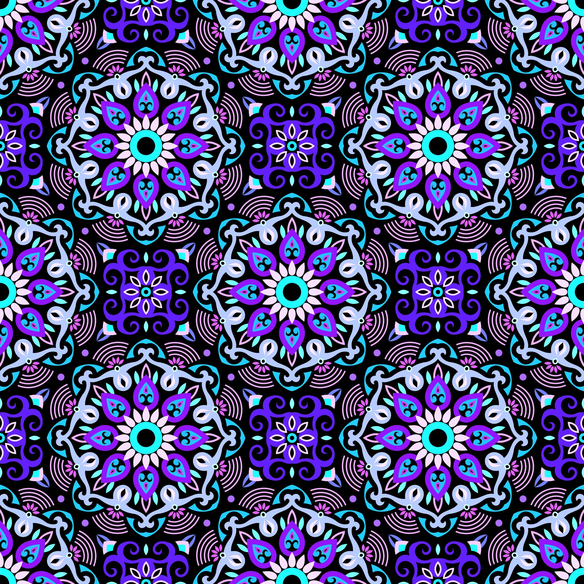 Blue - Purple - Turquoise Mandala Fabric - 140