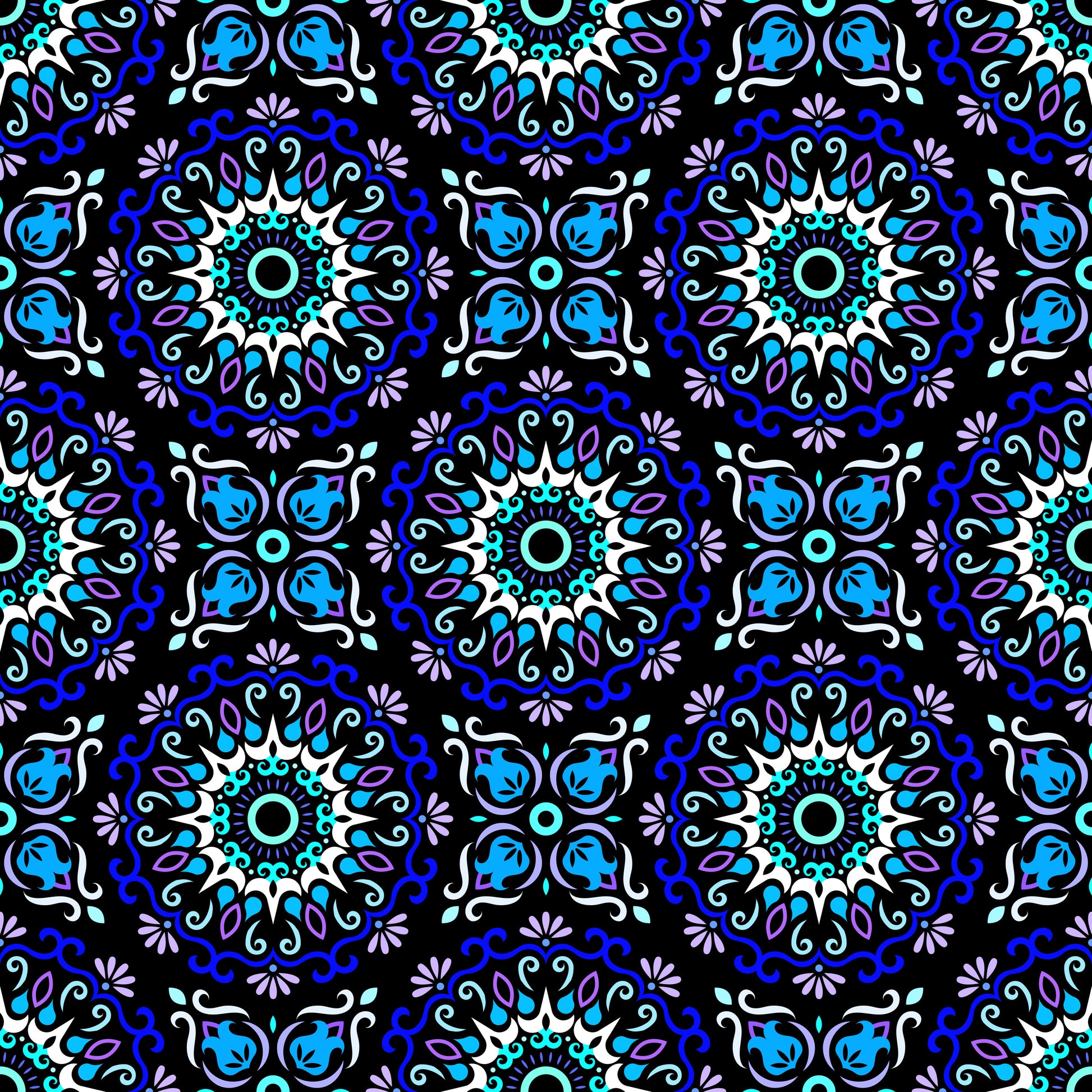 Blue - Purple - Turquoise Mandala Fabric - 174