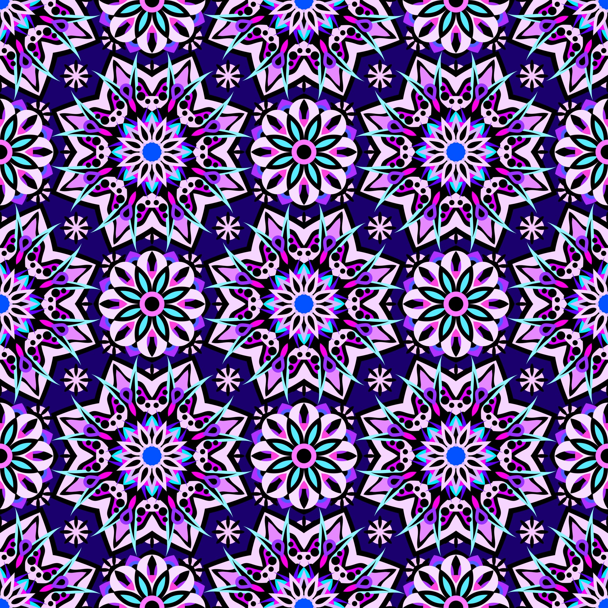 Blue - Purple - Turquoise - Pink Mandala Fabric - 122