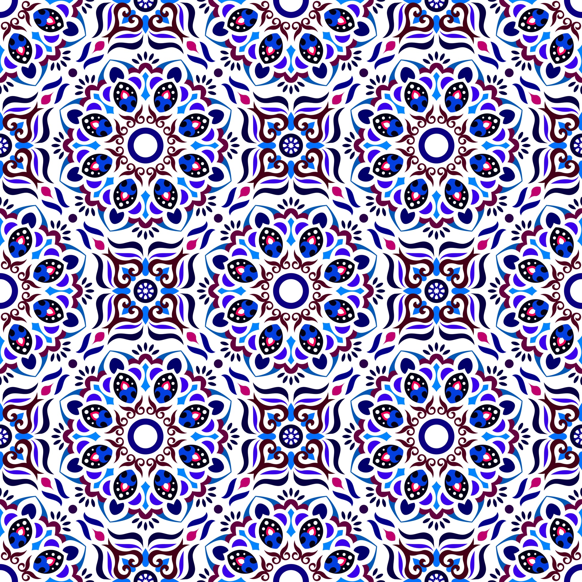 Blue - Red Mandala Fabric - 186i