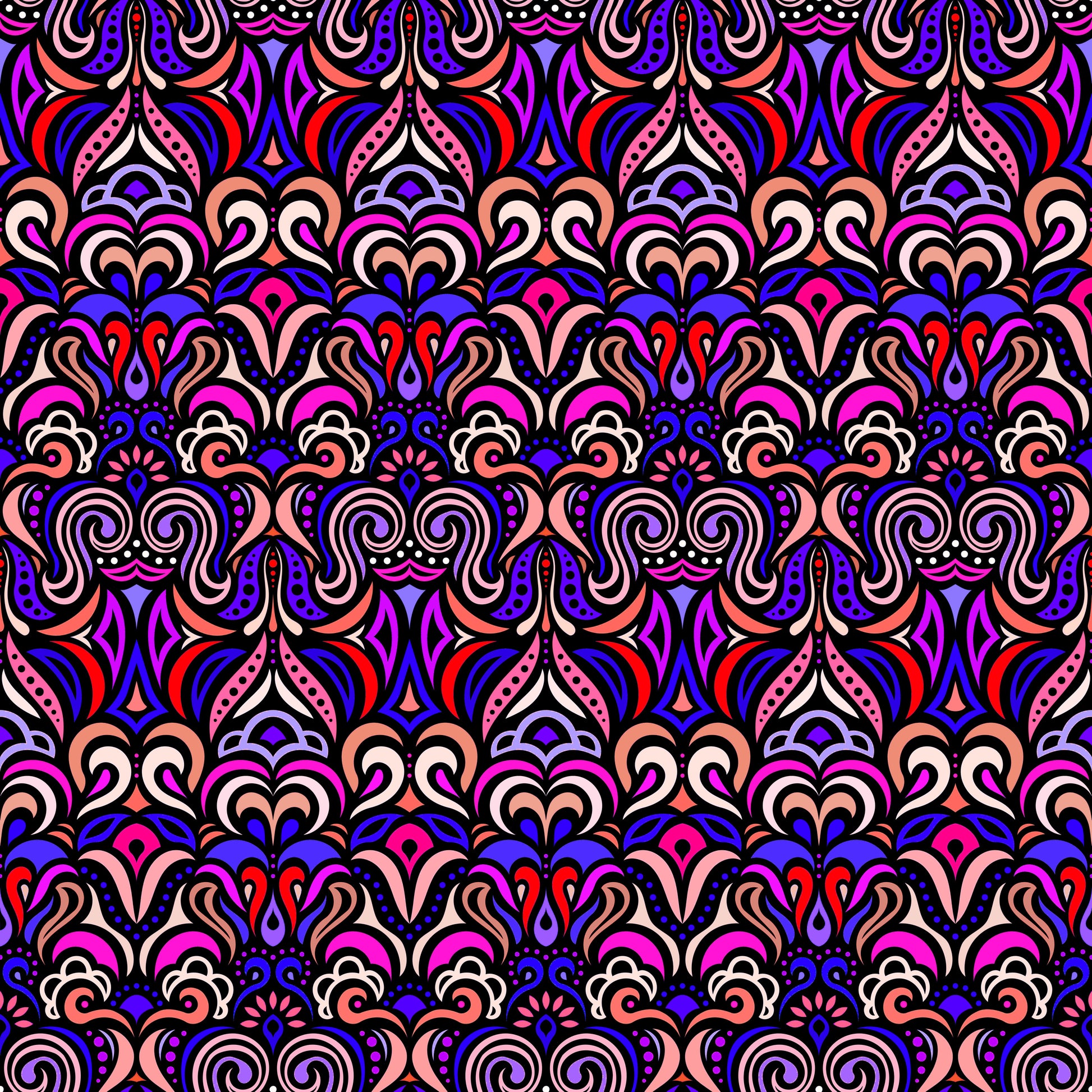 Blue - Red - Purple Abstract Doodle Fabric 1008.3