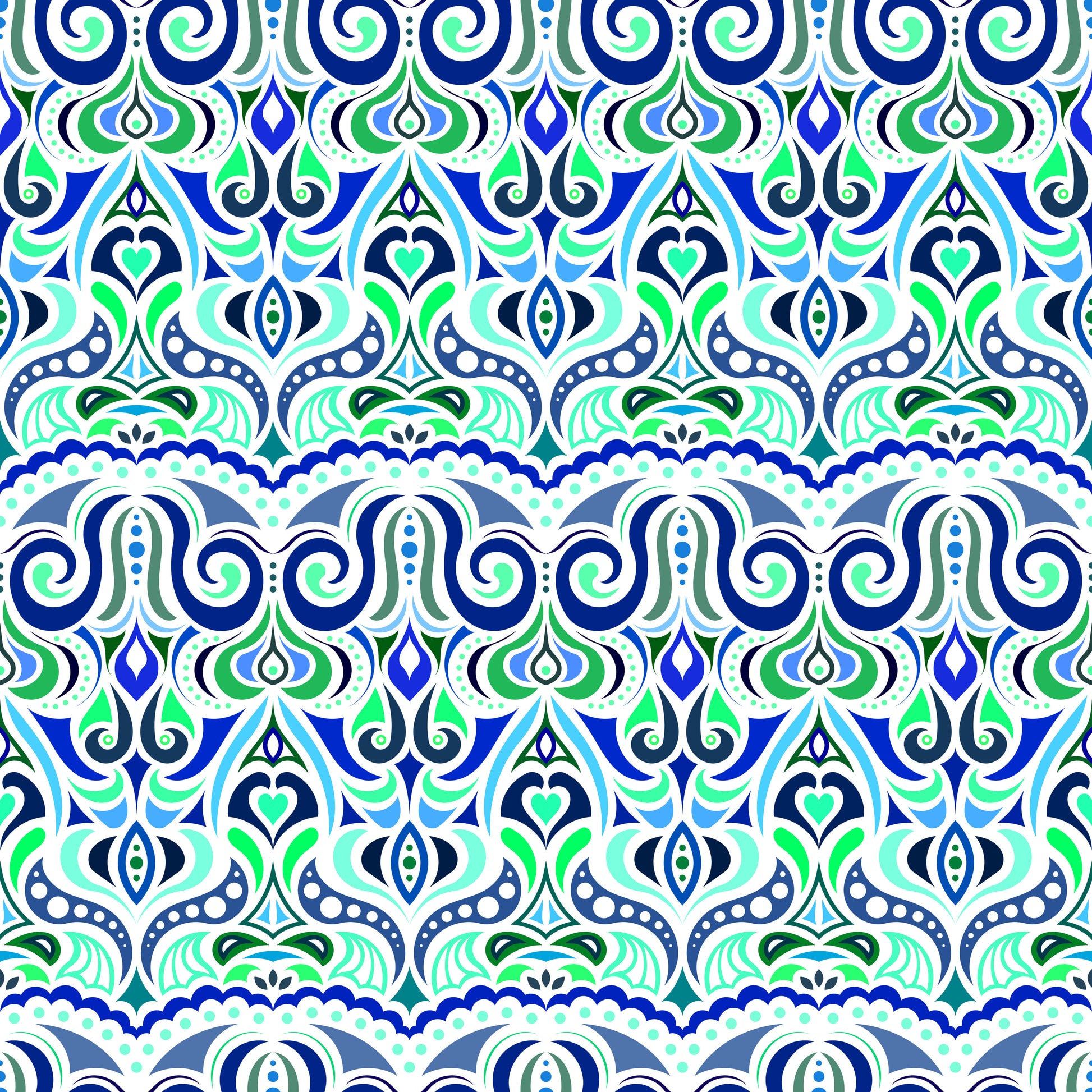 Blue - Turquoise - Green Abstract Doodle Fabric 1010.2i