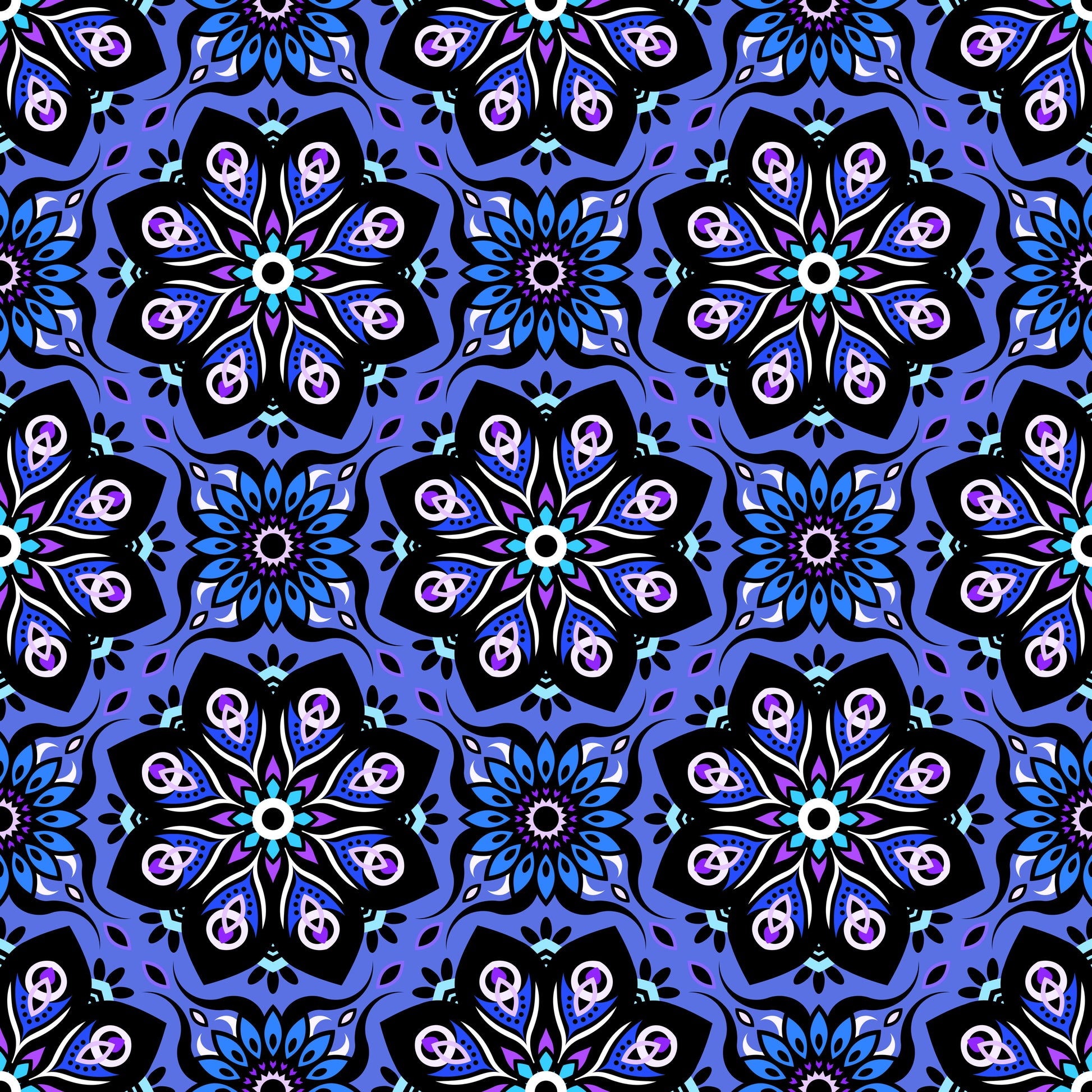Blue - Turquoise - Purple Mandala Fabric - 236