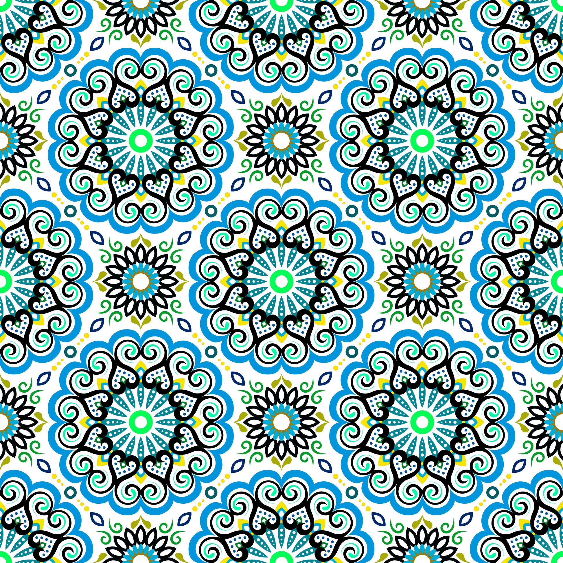 Blue - Turquoise - Yellow Mandala Fabric - 179i