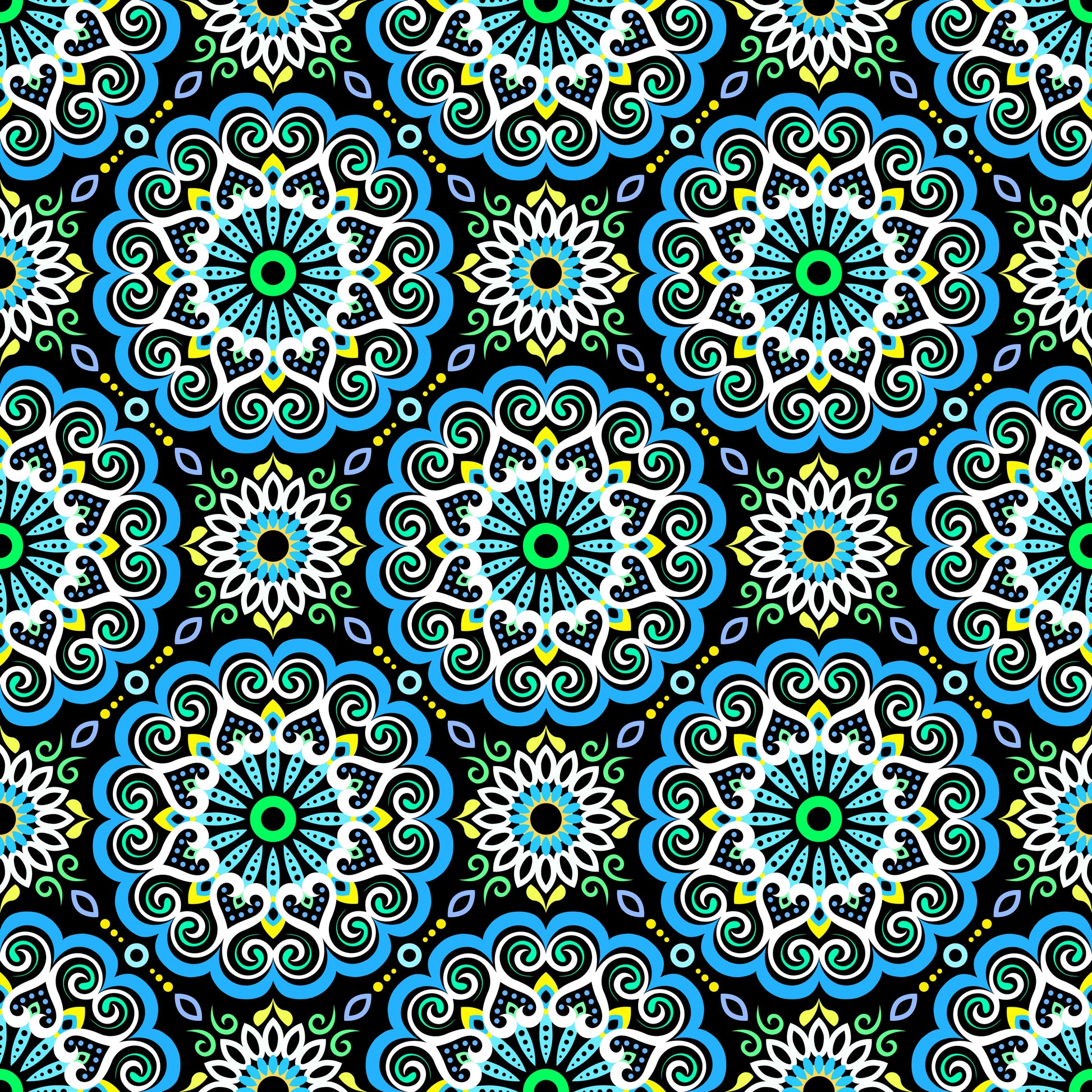 Blue - Yellow - Turquoise Mandala Fabric - 179