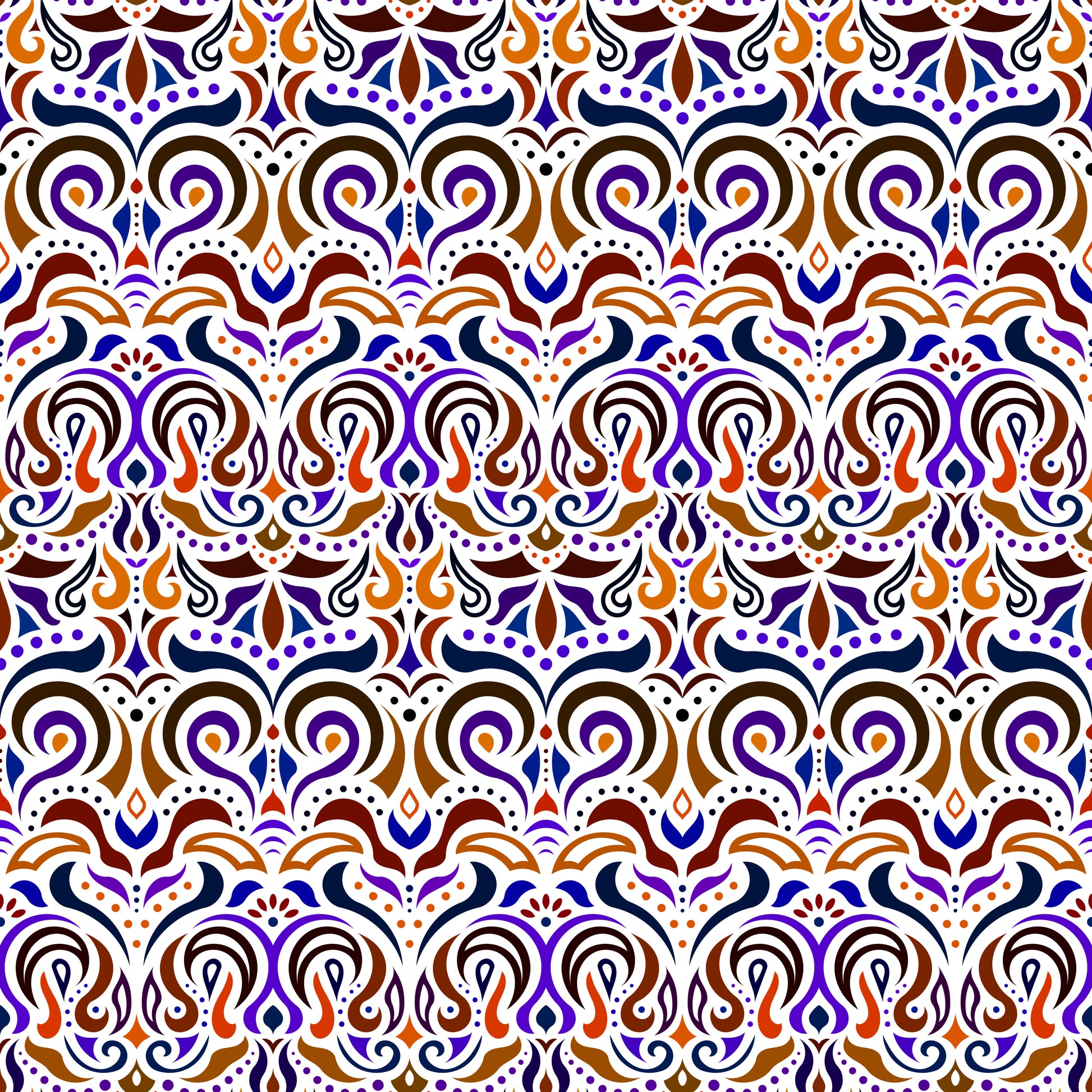 Brown - Blue - Orange Abstract Doodle Fabric 1007i