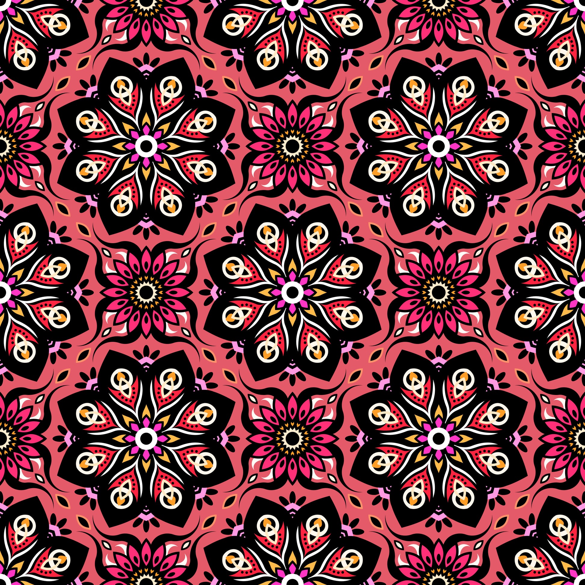 Coral - Pink - Yellow Mandala Fabric - 236