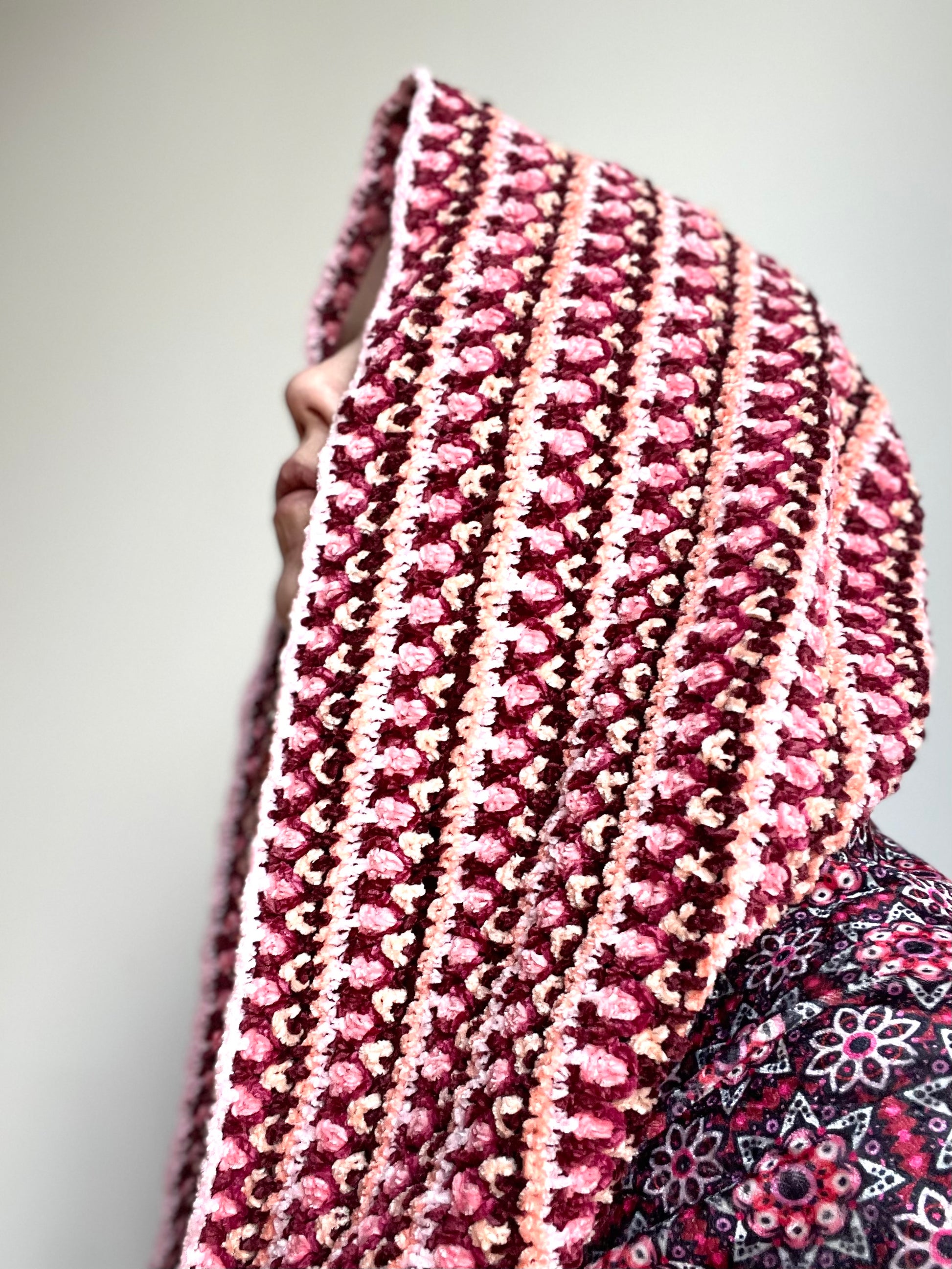 Crochet Kit: Peace Hooded Scarf in Crushed Velvet