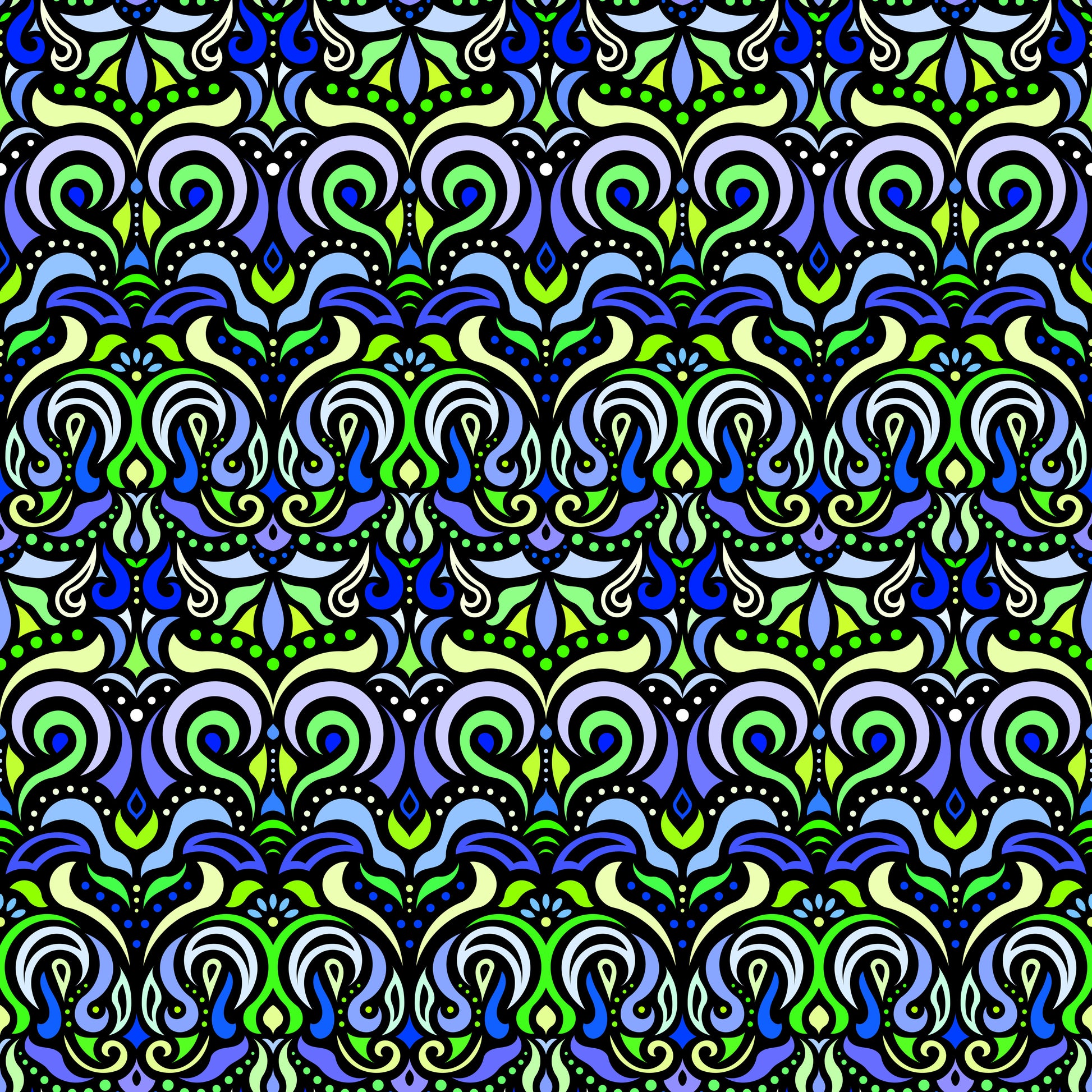 Green - Blue Abstract Doodle Fabric 1007