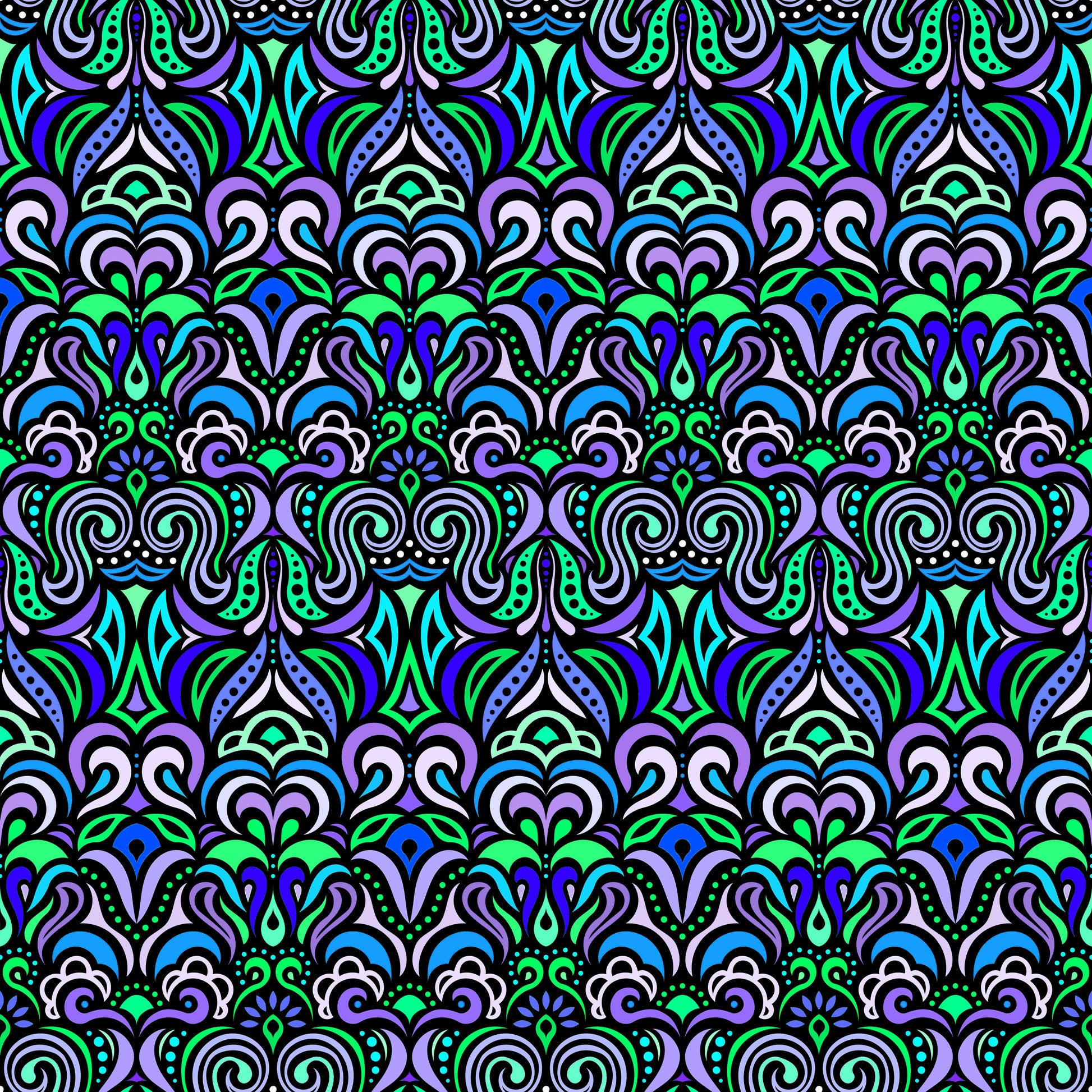 Green - Blue - Purple Abstract Doodle Fabric 1008.3