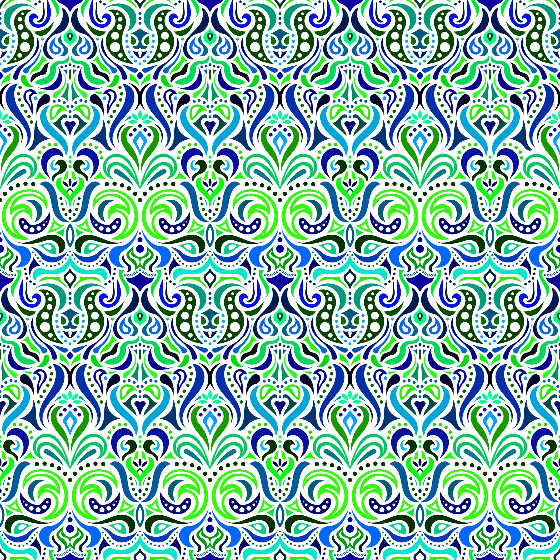 Green - Blue - Turquoise Abstract Doodle Fabric 1011.4i