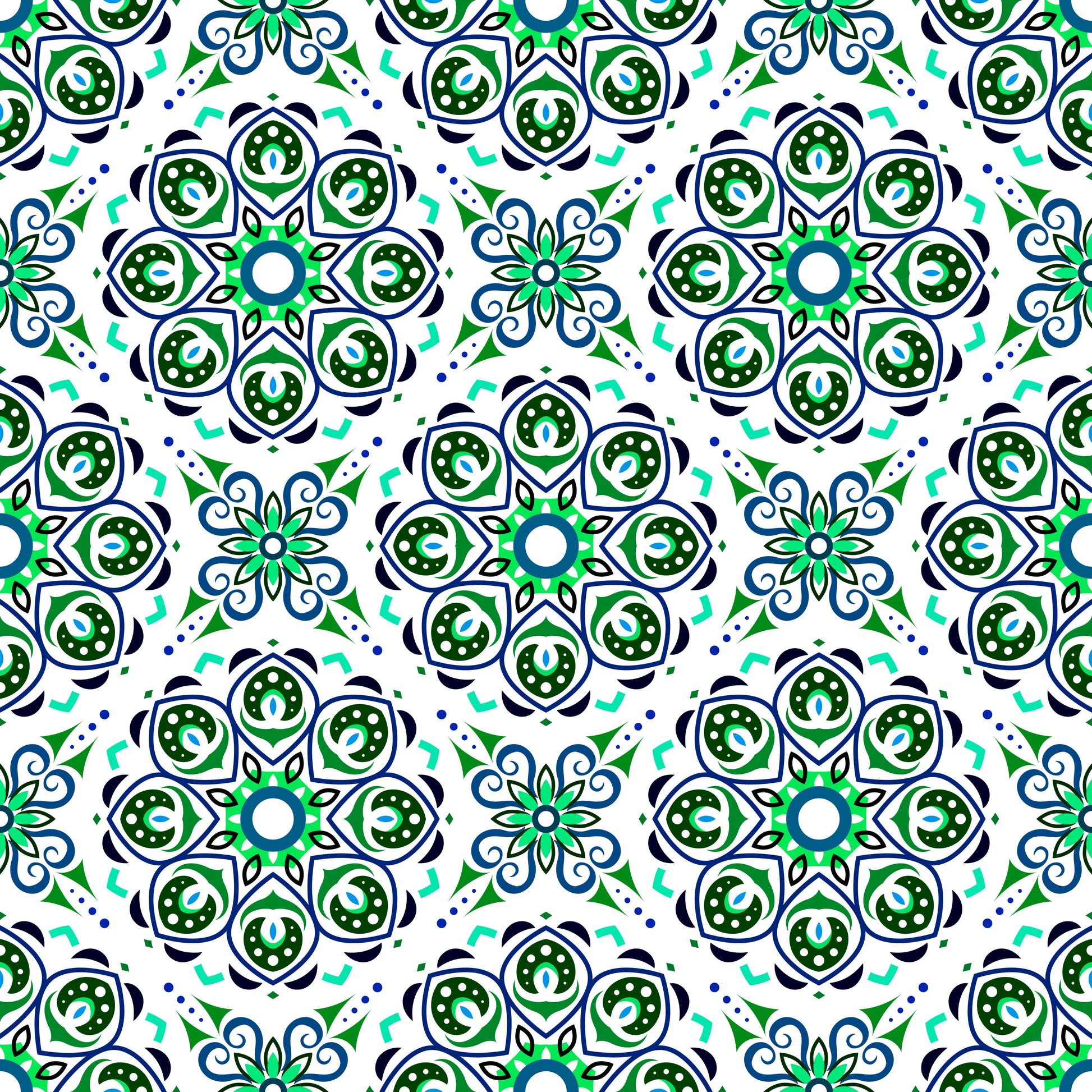 Green - Blue - Turquoise Mandala Fabric - 183i