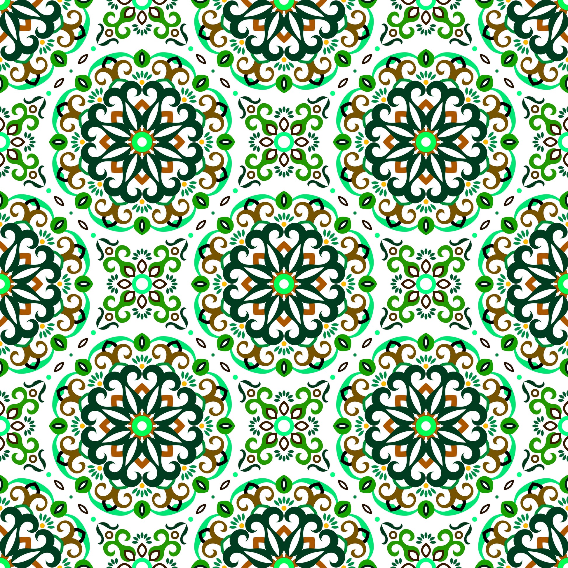 Green - Brown Mandala Fabric - 188i