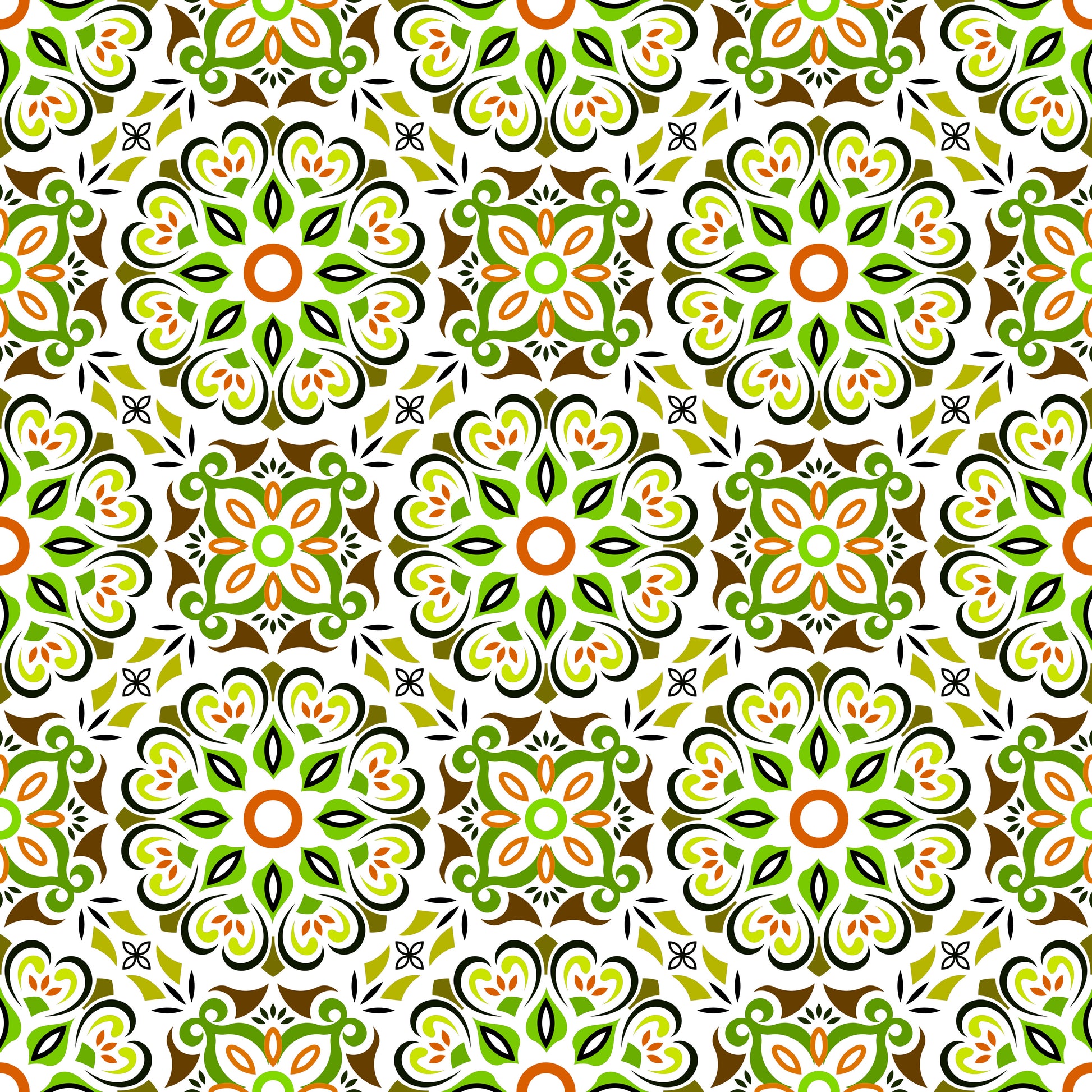 Green - Orange - Brown Mandala Fabric - 206i