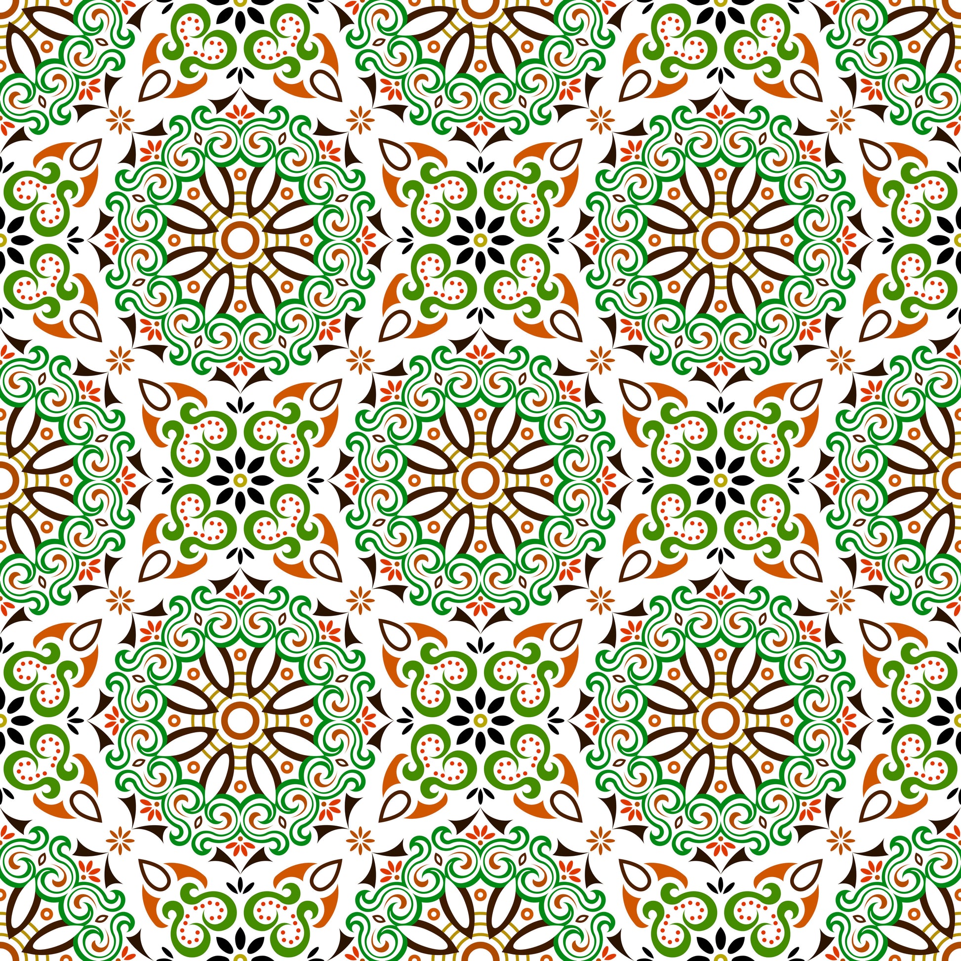 Green - Orange Mandala Fabric - 166i