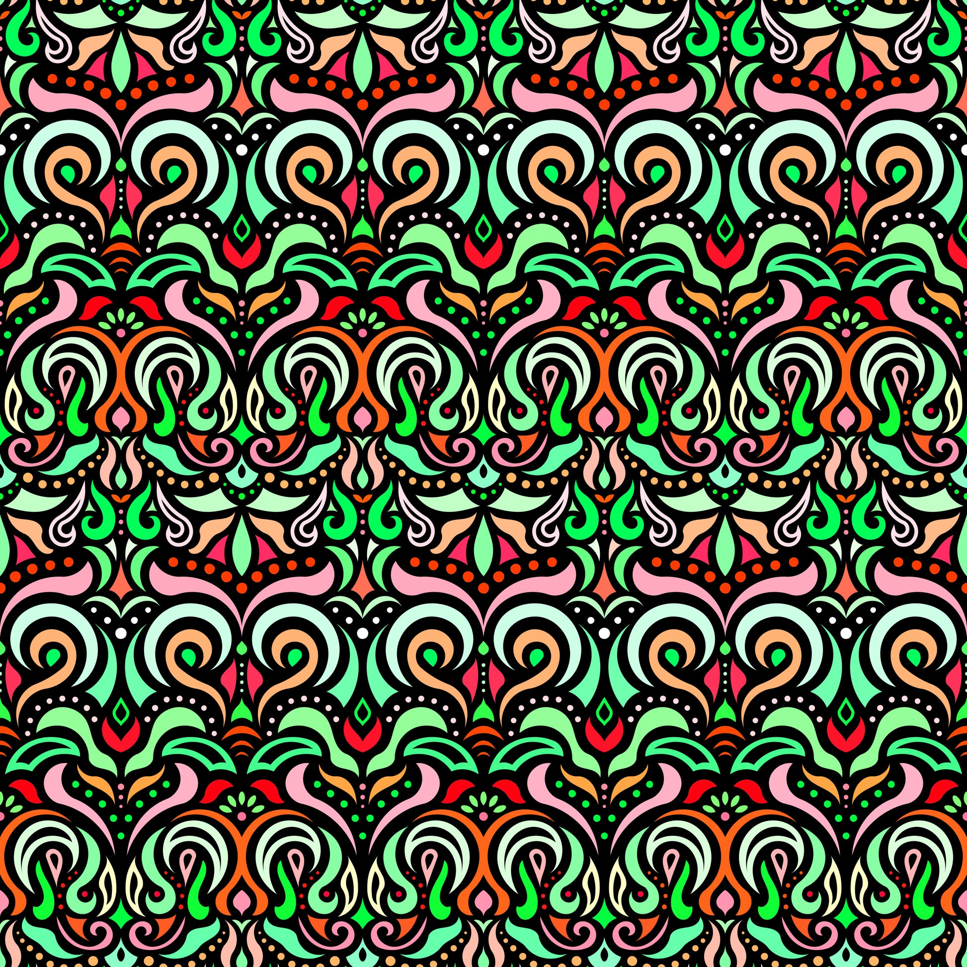Green - Orange - Red Abstract Doodle Fabric 1007