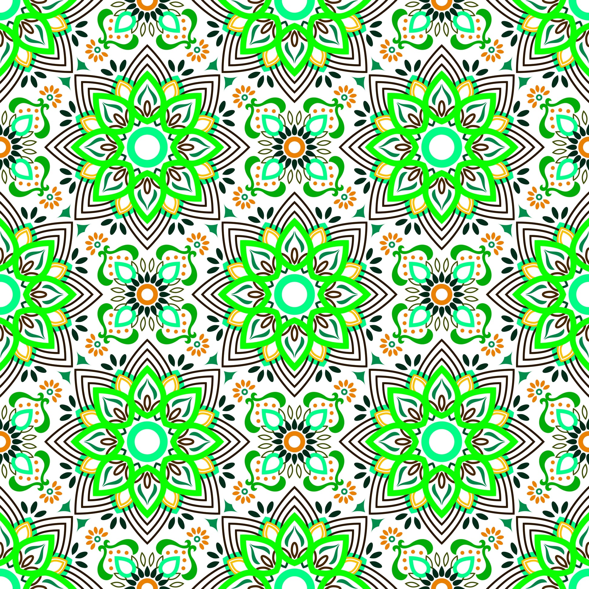 Green - Orange - Turquoise Mandala Fabric - 145i