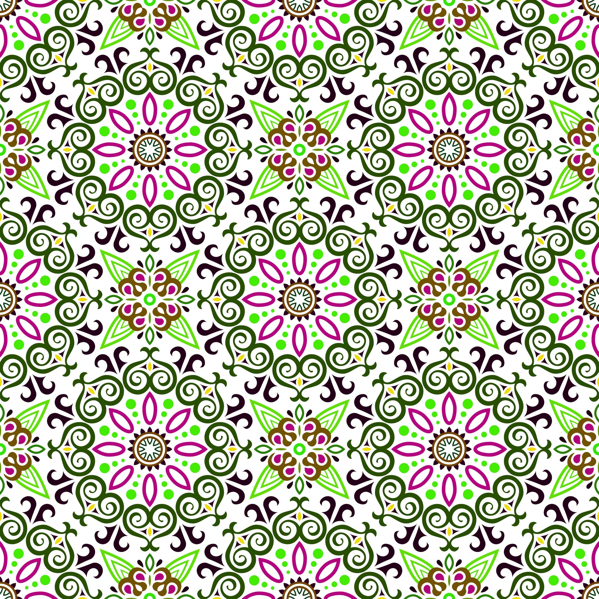 Green - Pink - Brown Mandala Fabric - 138i