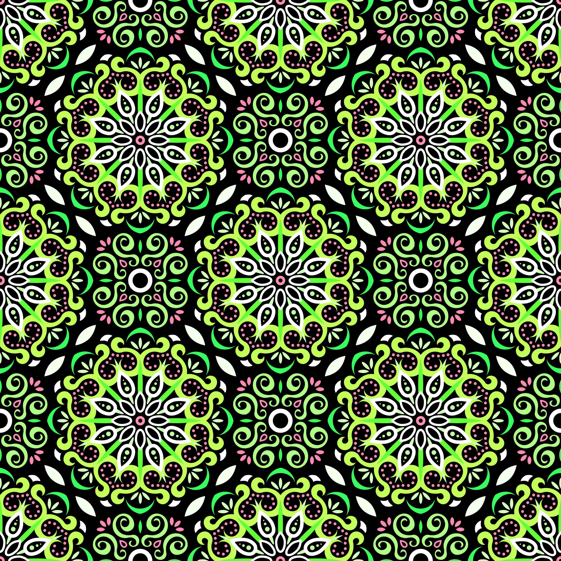 Green - Pink Mandala Fabric - 165