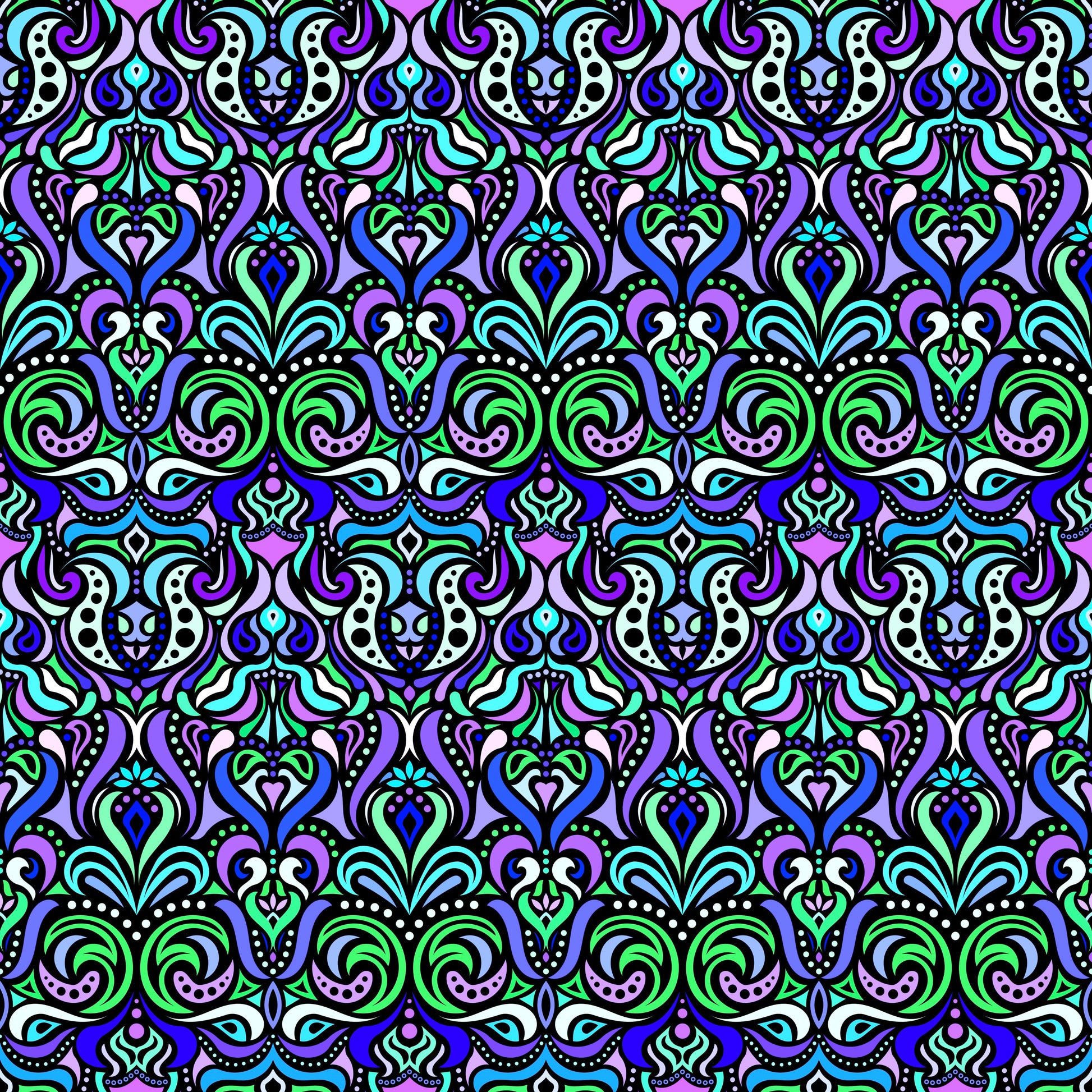 Green - Purple - Blue Abstract Doodle Fabric 1011.4