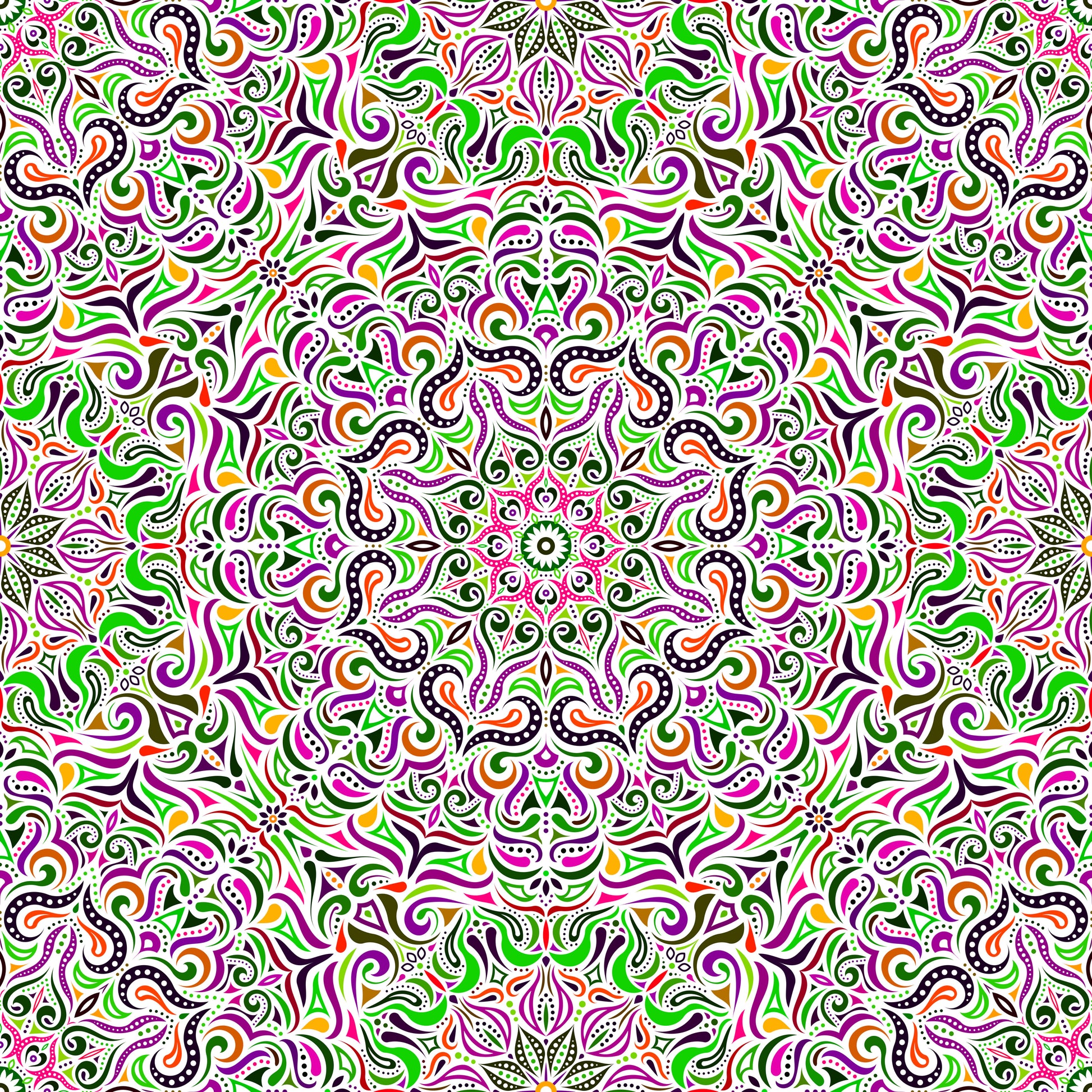 Green - Purple - Pink - Orange Mandala Fabric 2006.3i