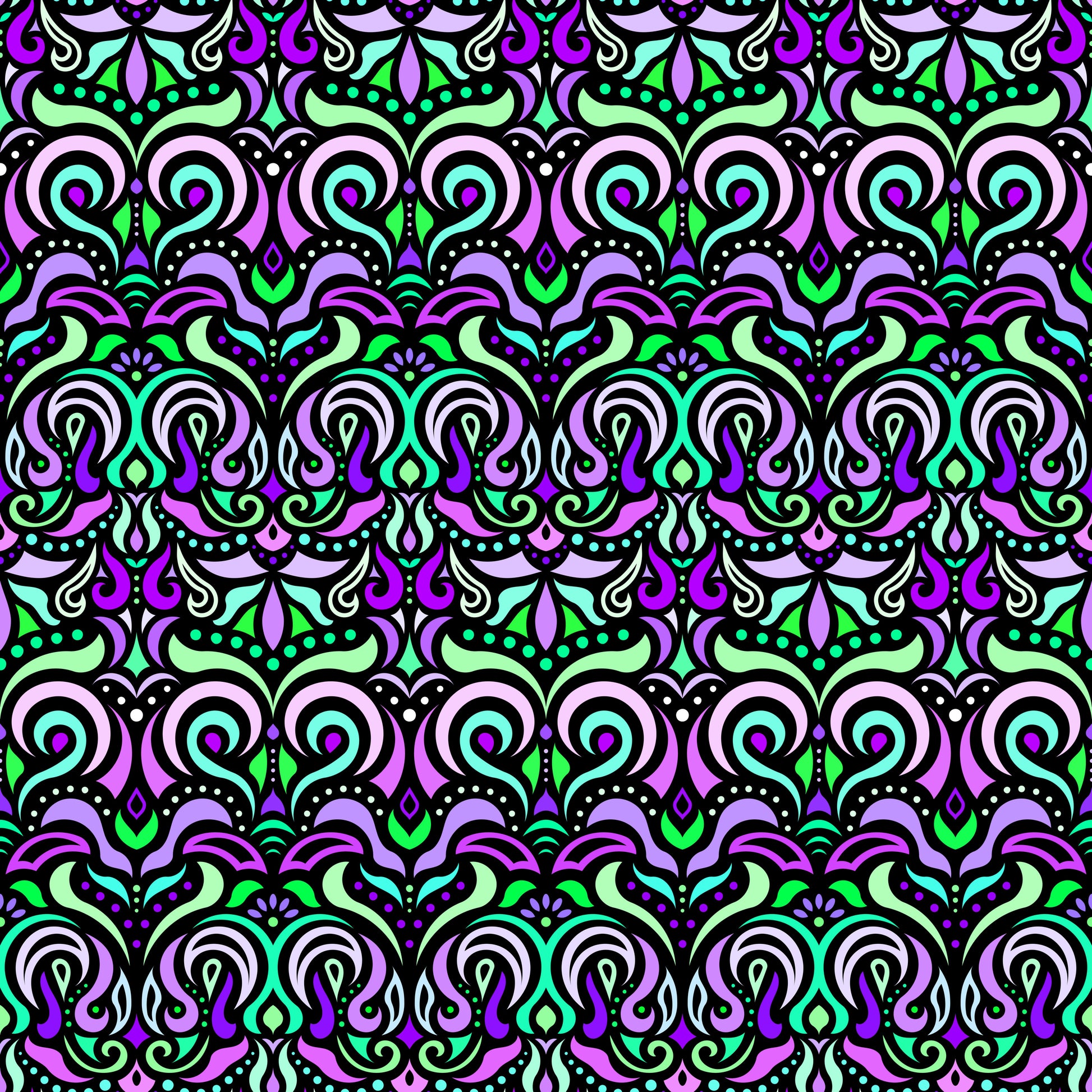 Green - Purple - Turquoise Abstract Doodle Fabric 1007