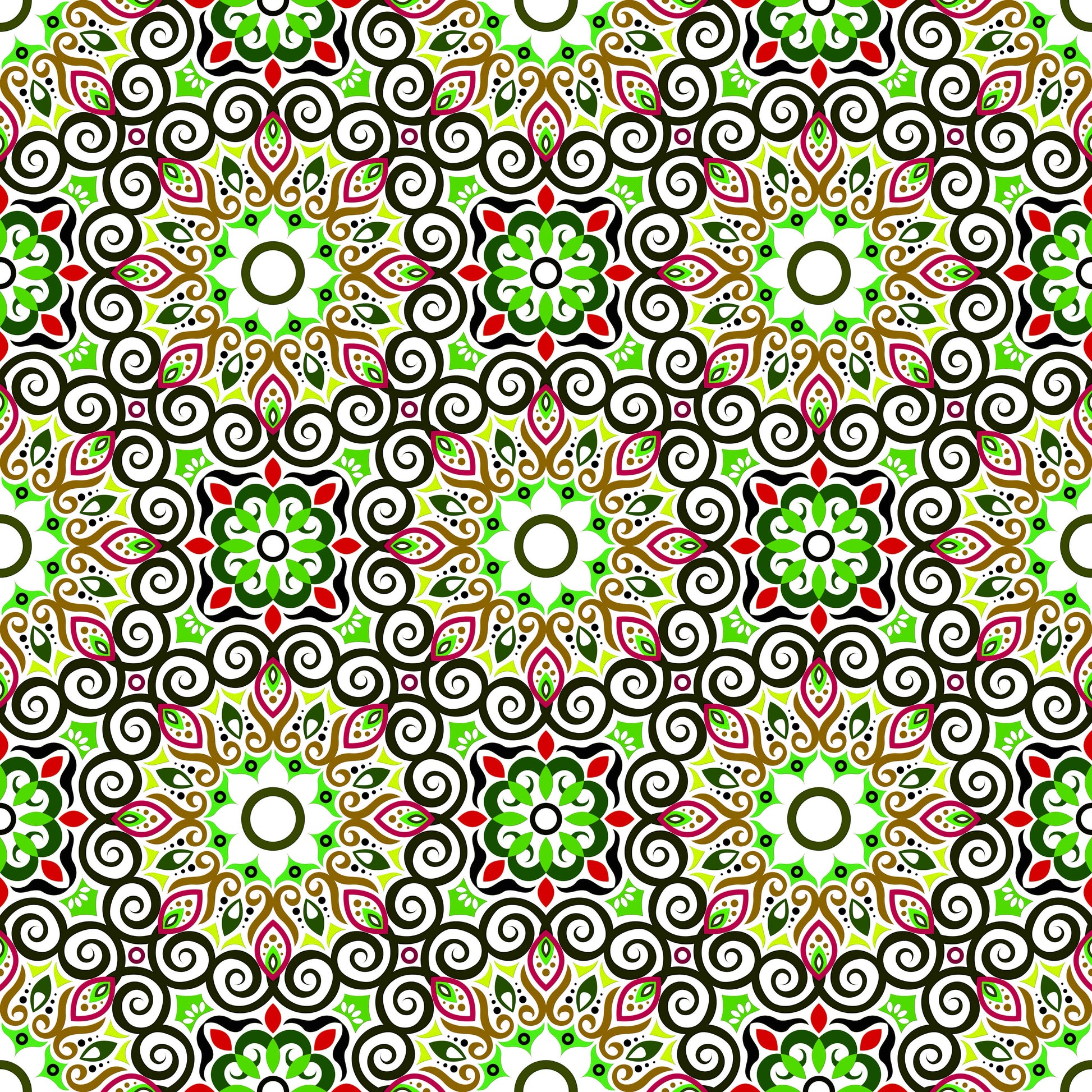 Green - Red - Brown Mandala Fabric - 125i