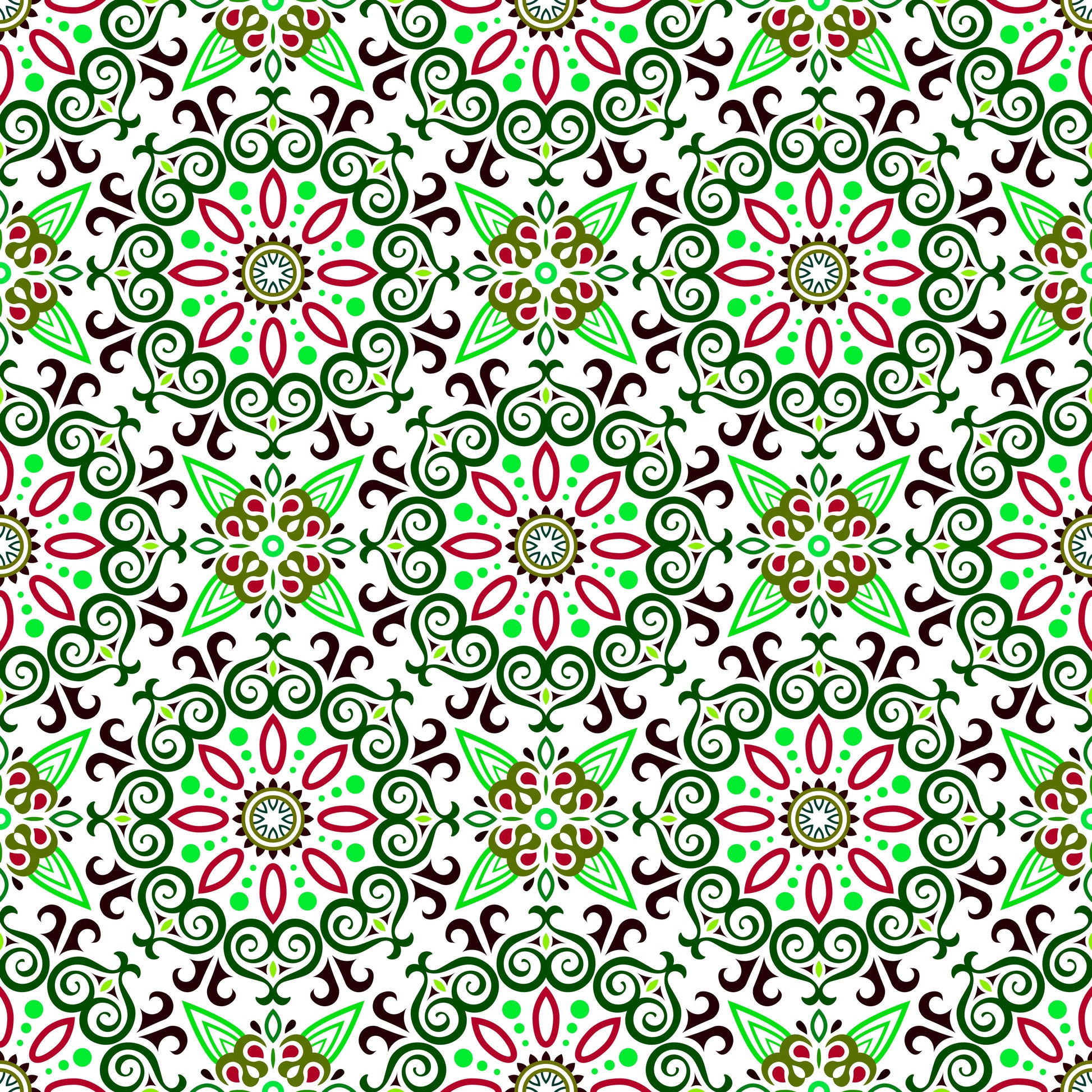 Green - Red Mandala Fabric - 138i