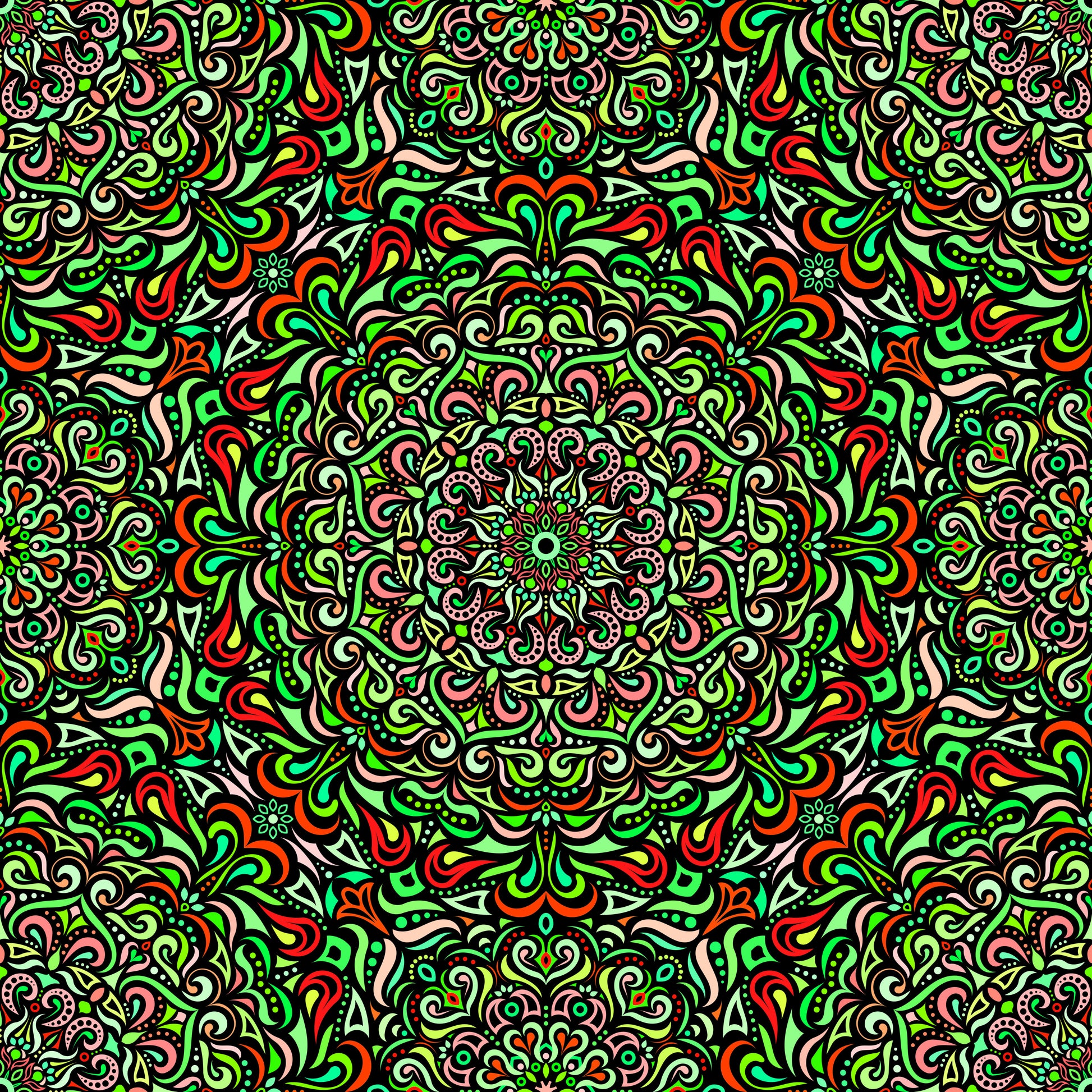 Green - Red Mandala Fabric 2005