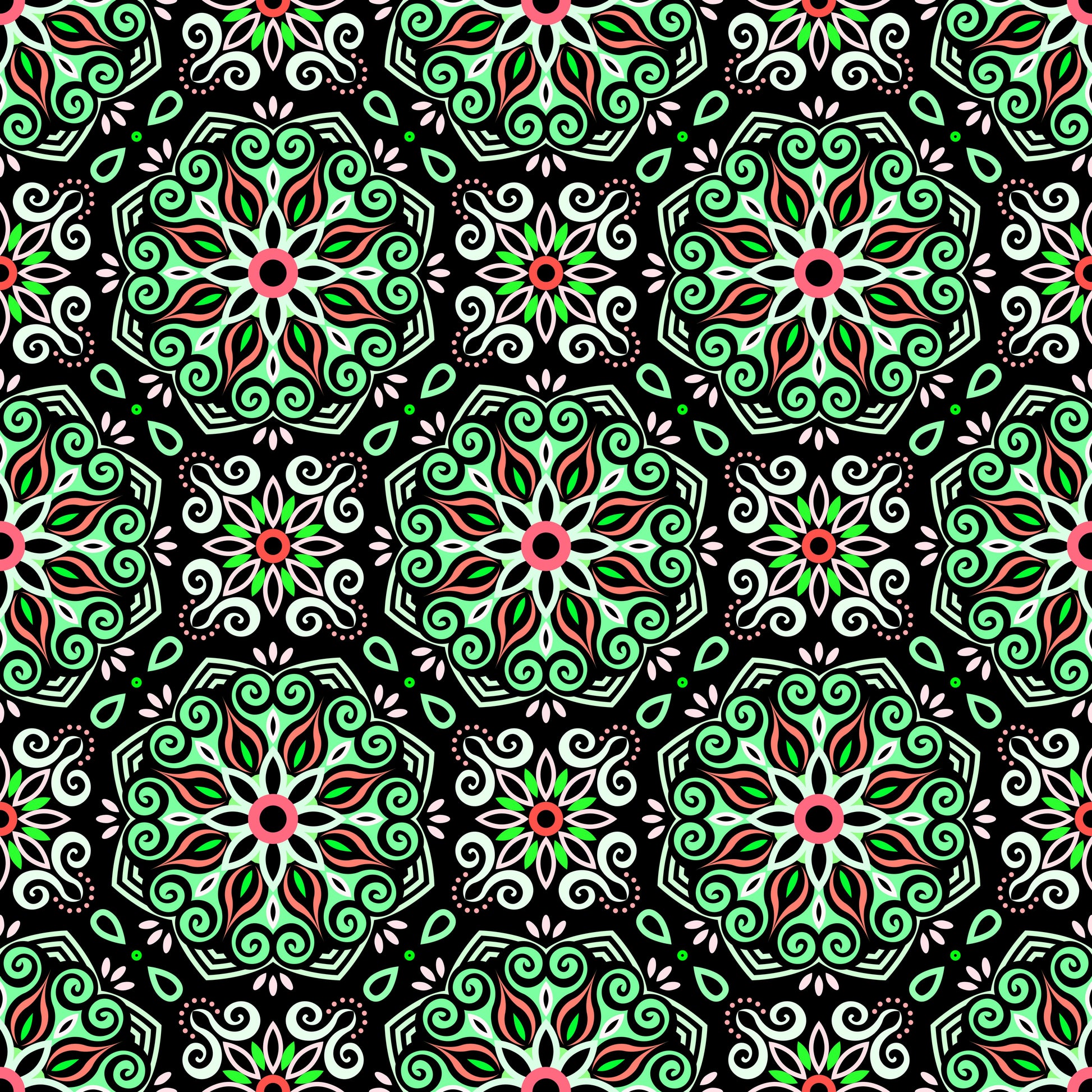 Green - Red Mandala Fabric - 203
