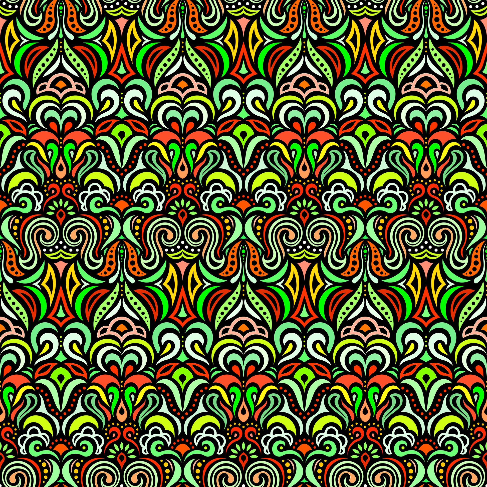 Green - Red - Yellow Abstract Doodle Fabric 1008.3