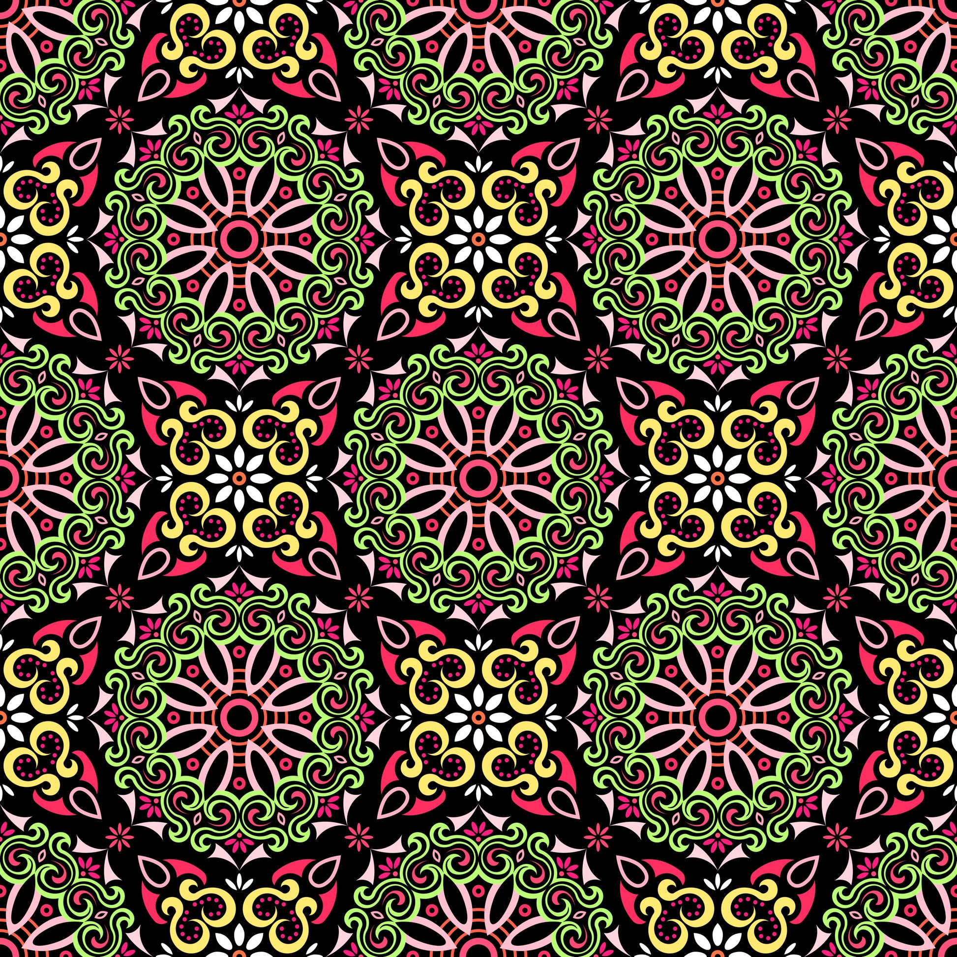 Green - Red - Yellow Mandala Fabric - 166