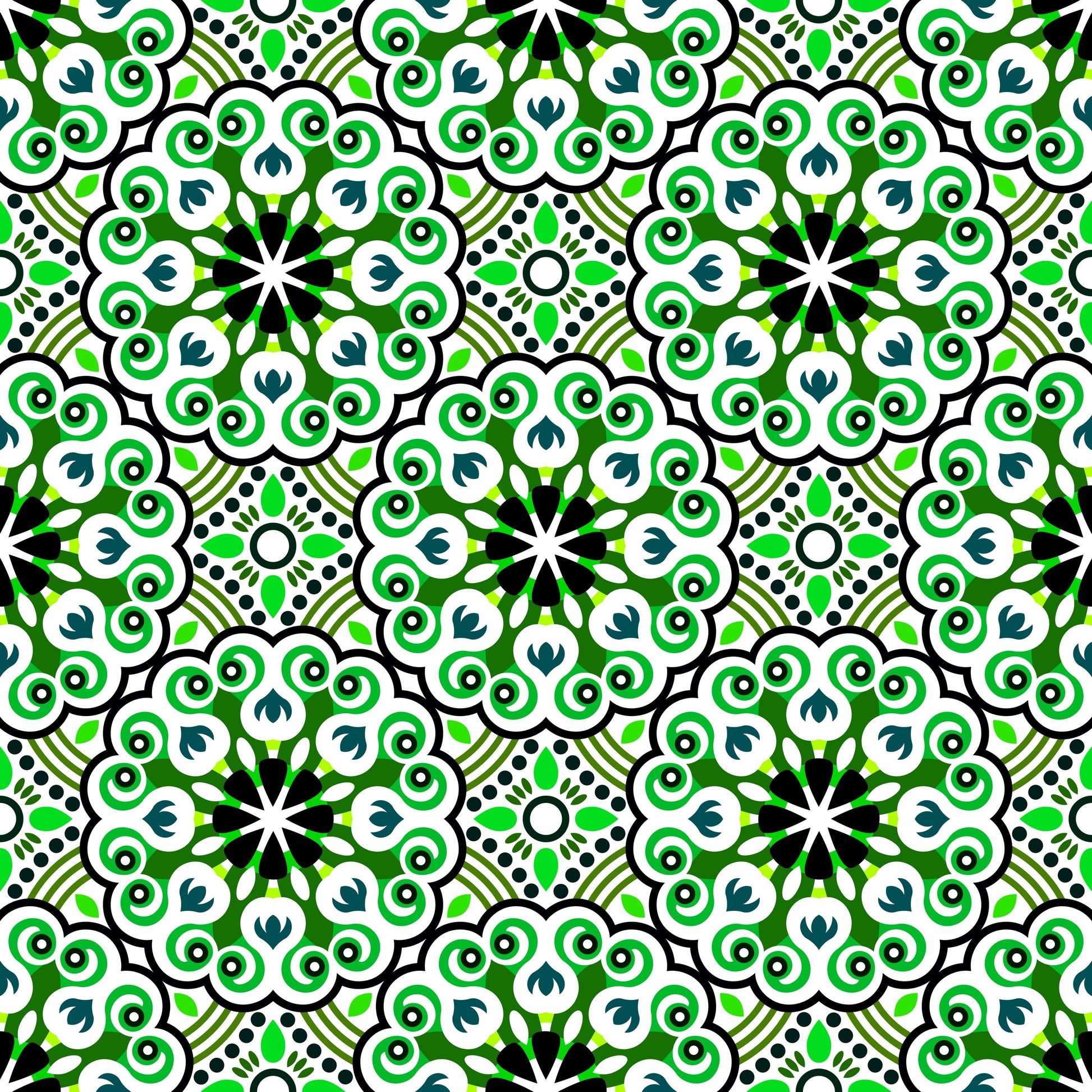 Green - Teal Mandala Fabric - 132i