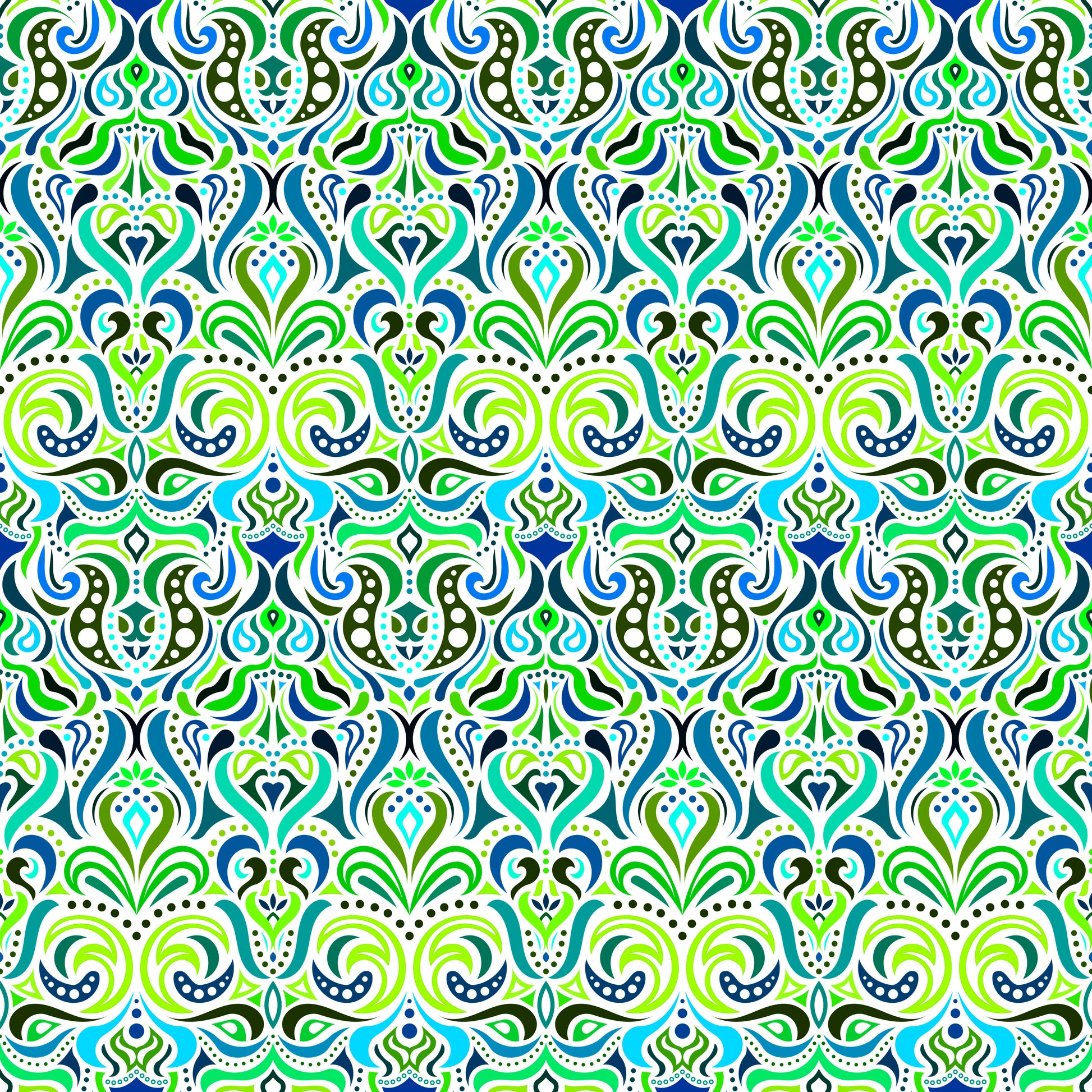 Green - Turquoise - Blue Abstract Doodle Fabric 1011.4i