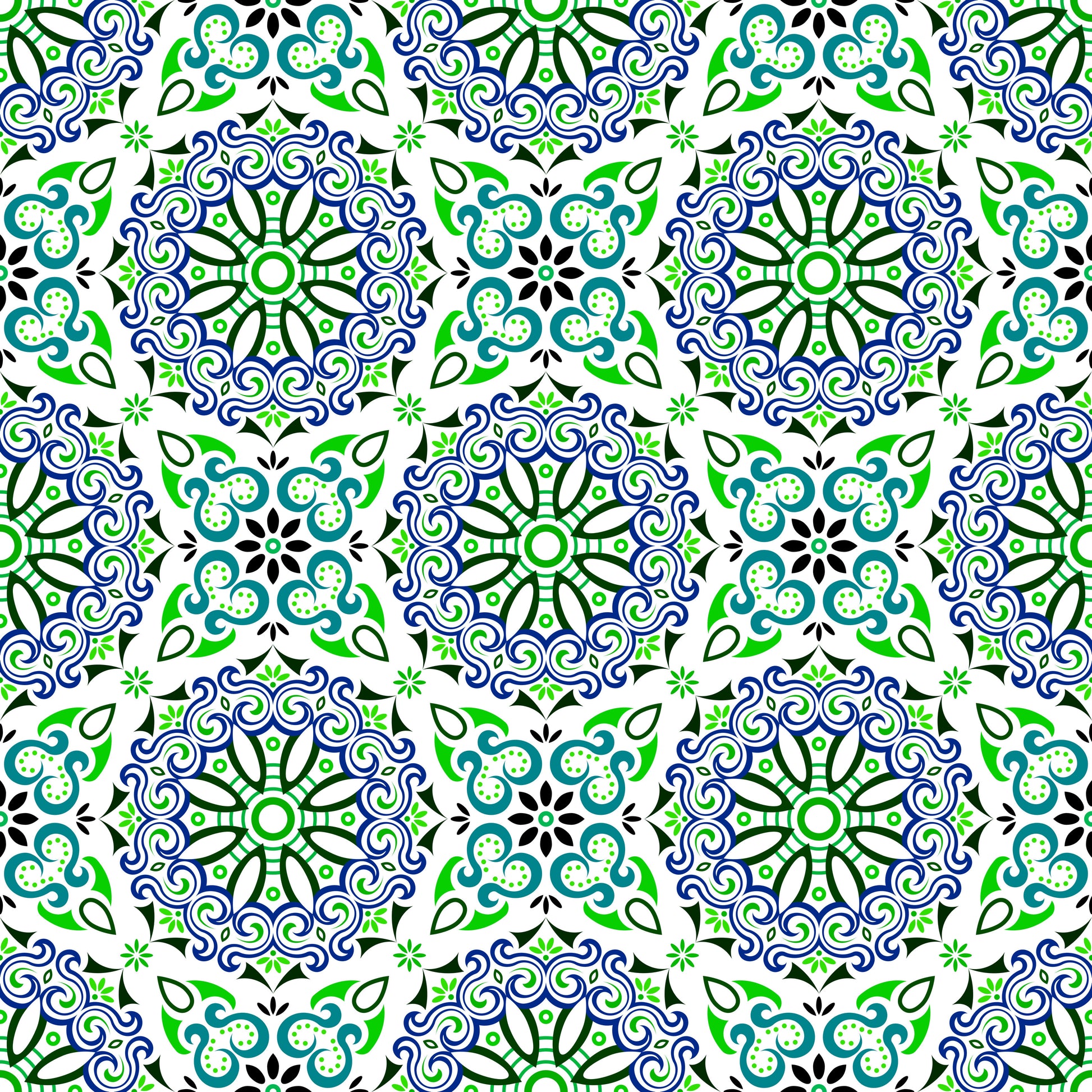 Green - Turquoise - Blue Mandala Fabric - 166i