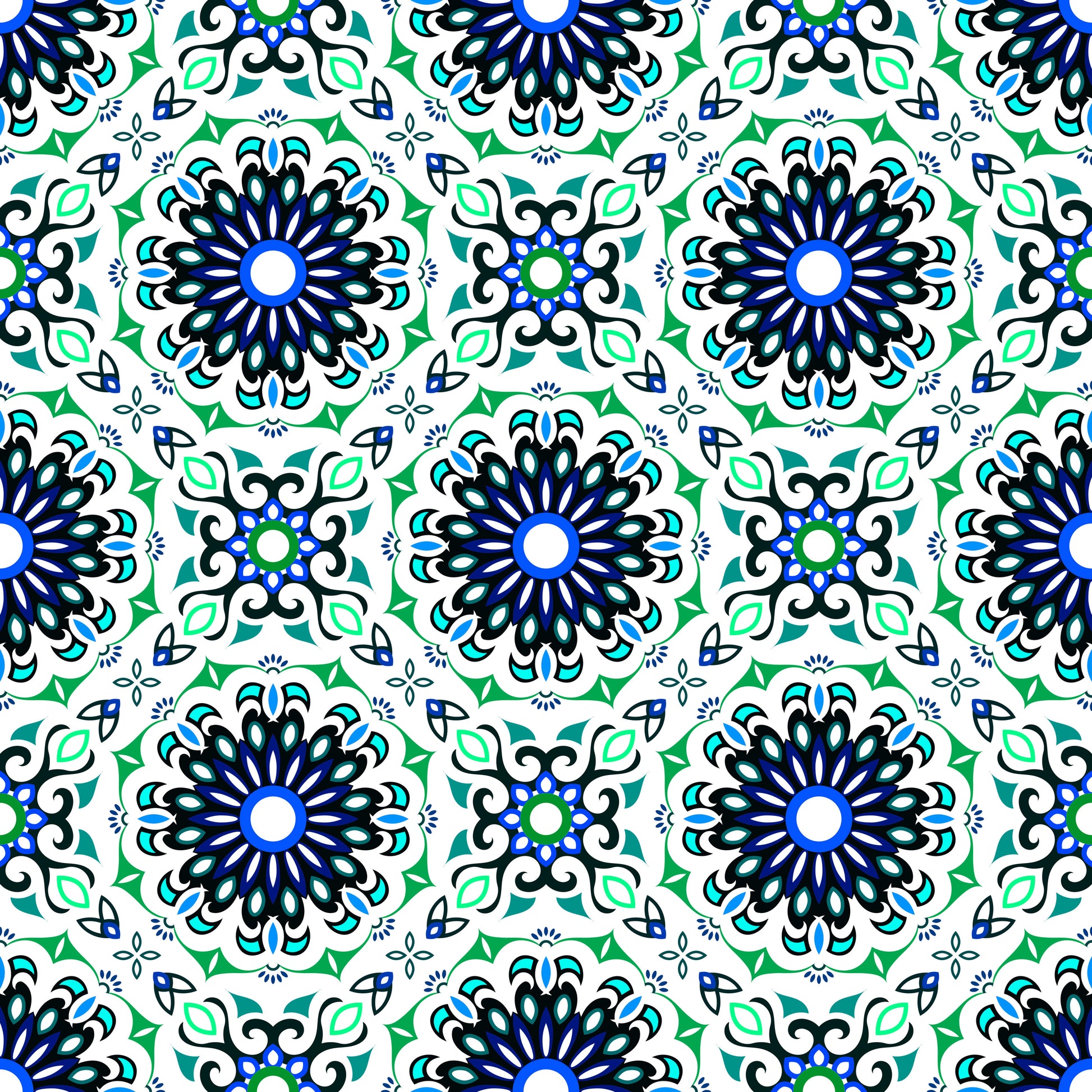Green - Turquoise - Blue Mandala Fabric - 198i