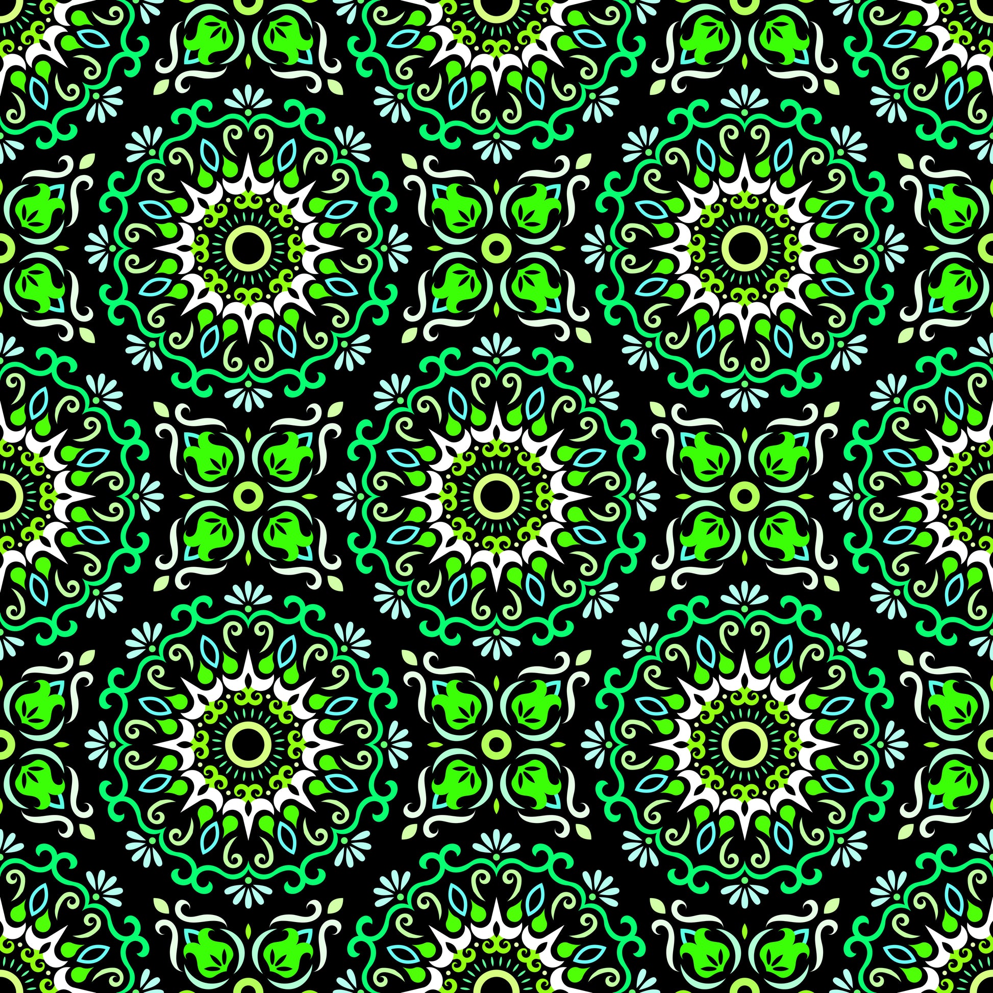 Green - Turquoise Mandala Fabric - 174