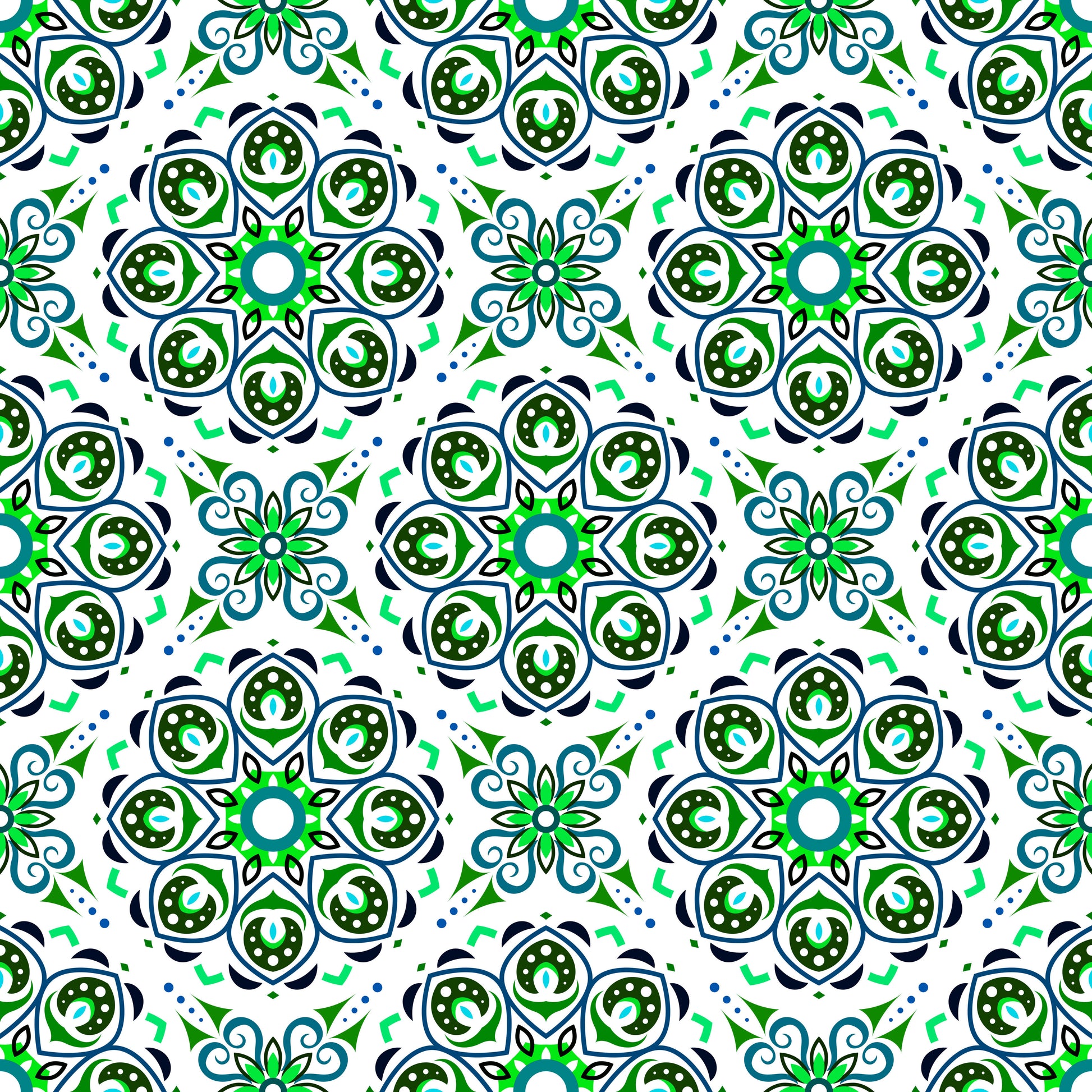 Green - Turquoise Mandala Fabric - 183i